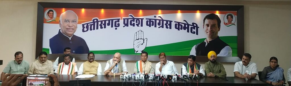 *राजीव भवन में पीसीसी अध्यक्ष मोहन मरकाम, मंत्री रविन्द्र चौबे, मो. अकबर, डॉ. शिवकुमार डहरिया, कवासी...