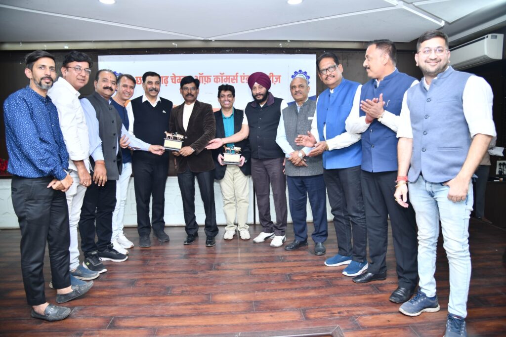 Raipur छत्तीसगढ़ चेम्बर ऑफ कॉमर्स एंड इंडस्ट्रीज के प्रदेश अध्यक्ष अमर पारवानी, महामंत्री अजय भसीन, कोषाध्यक्ष उत्तमचंद...