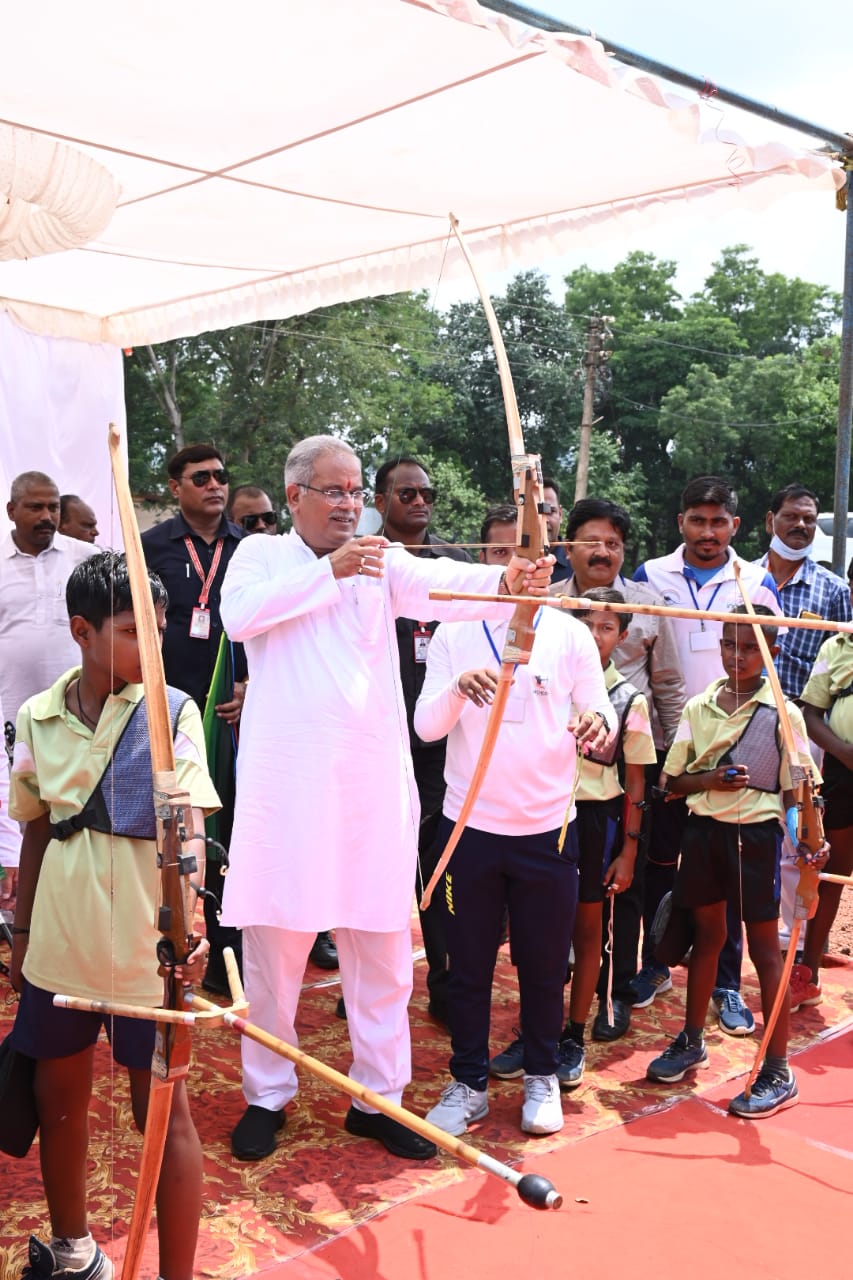 रायपुर, 27 जून 2022/ मुख्यमंत्री भूपेश बघेल आज जशपुर में तीरंदाजी का प्रशिक्षण ले रहे बच्चों से...