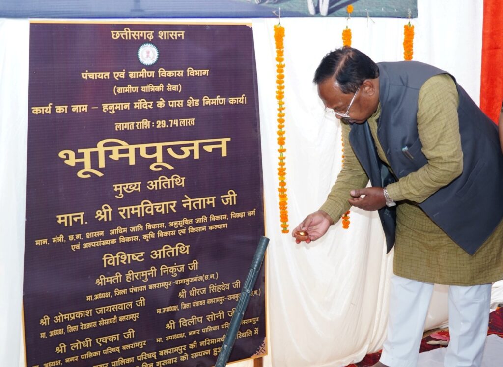*कृषि मंत्री ने श्रद्धालुओं की सुविधा के लिए हनुमान मंदिर परिसर में शेड निर्माण कार्य का...