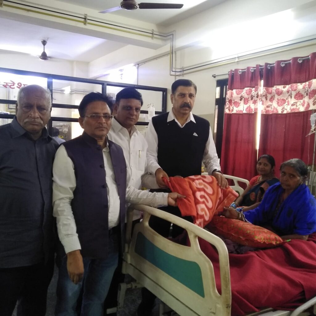 रायपुर । कन्फेडरेशन ऑफ ऑल इंडिया ट्रेडर्स (कैट) के वरिष्ठ राष्ट्रीय उपाध्यक्ष अमर पारवानी, चेयरमेन मगेलाल मालू, अमर गिदवानी, प्रदेश अध्यक्ष जितेन्द्र दोशी, कार्यकारी अध्यक्ष विक्रम सिंहदेव, परमानन्द जैन, वाशु माखीजा, महामंत्री सुरिन्द्रर सिंह, कार्यकारी महामंत्री भरत जैन, कोषाध्यक्ष अजय अग्रवाल एवं मीड़िया प्रभारी संजय चौंबे ने बताया कि आज कैट सी.जी. चैप्टर द्वारा मेकाहारा स्थित कैंसर अस्पताल में जरूरतमंद लोगों को कम्बल वितरण किया गया।