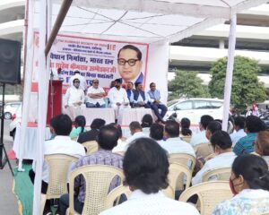 रायपुर – आज भारत रत्न संविधान निर्माता डॉक्टर बी. आर. अम्बेडकर की पुण्यतिथि पर राजधानी शहर रायपुर के कलेक्टोरेट चौक के सामने स्थित उनकी प्रतिमा के समक्ष उन्हें सादर नमन करने नगर निगम संस्कृति विभाग ने निगम जोन क्रमांक 4 के सहयोग से आयोजन रखा. इस संक्षिप्त एवं गरिमापूर्ण आयोजन में नगर निगम संस्कृति विभाग के अध्यक्ष श्री आकाश तिवारी ने भारत रत्न संविधान निर्माता डॉक्टर बी. आर. अम्बेडकर को उनकी पुण्यतिथि पर सादर नमन कर श्रद्धांजलि अर्पित की. निगम संस्कृति विभाग अध्यक्ष ने भारतरत्न संविधान निर्माता डॉक्टर बी. आर. अम्बेडकर को पुण्यतिथि पर श्रद्धासुमन अर्पित करते हुए कहा कि डॉक्टर बीआर अम्बेडकर ने अपना सम्पूर्ण जीवन देश एवं समाज की सेवा में अर्पित कर दिया.