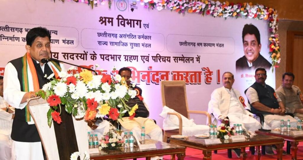 डॉ. डहरिया आज यहां रायपुर के एक निजी होटल में श्रम विभाग के अंतर्गत छत्तीसगढ़ भवन एवं अन्य सन्निर्माण कर्मकार मंडल, छत्तीसगढ़ असंगठित कर्मकार राज्य सामाजिक सुरक्षा मंडल एवं छत्तीसगढ़ भवन एवं अन्य सन्निर्माण कर्मकार कल्याण मंडल में नव मनोनीत सदस्यों के शपथ ग्रहण समारोह कार्यक्रम को सम्बोधित कर रहे थे। कार्यक्रम में डॉ. डहरिया ने सभी मनोनीत सदस्यों को सम्मानित भी किया। डॉ. डहरिया ने मंडलों के सभी सदस्यों एवं पदाधिकारियों से आग्रह किया कि वे श्रमिकों के लिए संचालित शासन की सभी योजनाओं से उन्हें फायदा पहुंचाने के लिए सभी आवश्यक कार्यवाही सुनिश्चित करें।