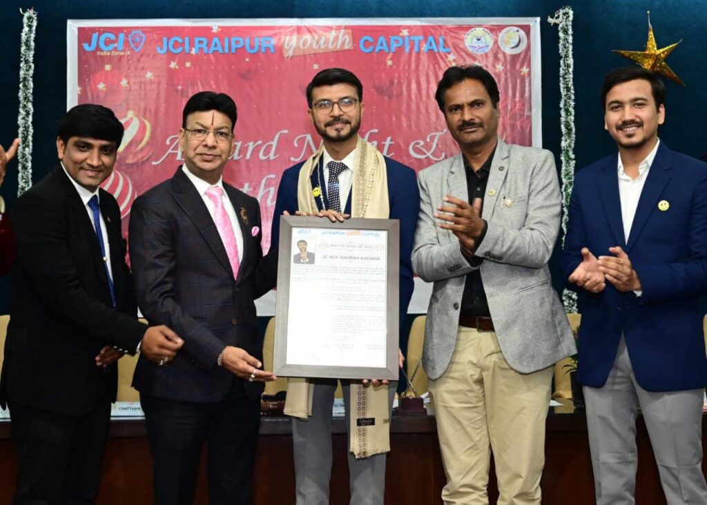 रायपुर । जे सी आई रायपुर युथ कैपिटल की अवॉर्ड नाइट आयोजित की गई थी। इस अवसर पर जे सी गौरव कोचर को जेसीस के सर्वोच्च सम्मान कमल पत्र से सम्मानित किया गया। भारतीय जूनियर चेंबर के पूर्व अध्यक्ष (पंजाब राज्य) स्वर्गीय कमल सहारान की स्मृति में प्रति वर्ष किसी एक युवा को उनकी विशेष उपलब्धियों व अनावृत सेवाओं हेतु दिया जाने वाला यह सर्वोच्च सम्मान प्रदान किया गया । इन्होंने अपने कार्यकाल में राज्यस्तरीय युथ कार्निवल, क्लासिकल डांस एंड सिंगिंग प्रतियोगिता एवं जोन 9 के लॉट्स ट्रेनिंग प्रोग्राम का आयोजन किया है । ये जे सी आई रायपुर युथ कैपिटल से पिछले 5 सालों से जुड़े हुए हैं, इस दौरान 2021 में इन्होंने अध्यक्ष के रूप में चैप्टर को नई ऊंचाइयों पर पहुंचाया और अध्याय को पहली बार 100% एफिशिएंट लोम बनाया । “आंखों में जीत के सपने है, ऐसा लगता है । अब जिंदगी में सब अपने हैं।” यह वाक्य इनके जीवन को चरितार्थ करता है । इस कार्यक्रम के मुख्य अतिथि के रुप में जे सी आई सुपर चैप्टर के फाउंडर एवम चेयरमैन पी पी पी जे एफ आर राजेश अग्रवाल जी , ओथ ओफिसर के रूप में जोन IX अध्यक्ष 2023 जे सी आई सीनेटर सी ए आकाश सुंदरानी , की नोट स्पीकर के रूप में जे एफ एस जे सी आई सीनेटर सी ए अमिताभ दूबे मौजूद रहे । साथ ही जे सी आई रायपुर युथ कैपिटल के चैप्टर इंचार्ज जे सी आई सीनेटर एडवोकेट संदीप तौरानी, को इंचार्ज जे सी लक्ष्य पारख, पास्ट प्रेसिडेंट जे सी अमिताभ अग्रवाल, शुभम बरडिया, अध्यक्ष 2023 जे सी राशि कौर एवम समस्त युथ टीम मौजूद रही ।