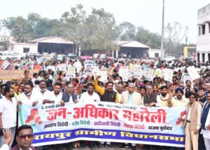 इसमें कार्यकर्ताओं के साथ-साथ आमजन भी शामिल हुए।जन अधिकार रैली के माध्यम से छत्तीसगढ़ में आरक्षण विधेयक पर राज्यपाल से दसखत करने की मांग की गई। आपको बता दें कि कोर्ट से आरक्षण में फैसला आने के बाद राज्य सरकार द्वारा विशेष सत्र बुलाकर आरक्षण की नई रूपरेखा बनाई गई जिसमें 76 प्रतिशत आरक्षण लागू किया जा रहा है