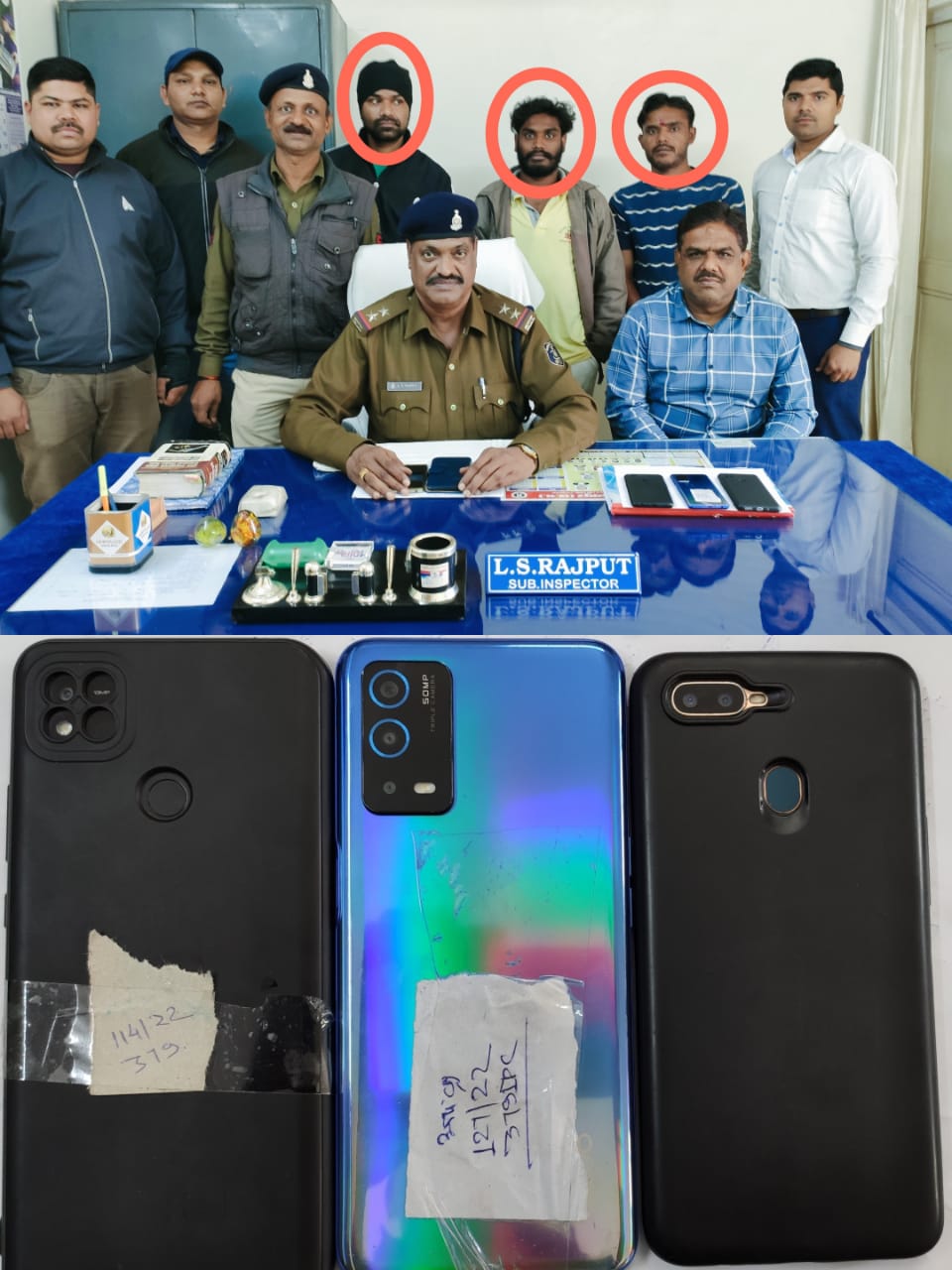 अमिय नंदन सिन्हा/महानिरीक्षक सह प्रमुसुआयुक्त/रेसुब बिलासपुर के दिशा निर्देशन तथा श्री संजय गुप्ता/मंडल सुरक्षा आयुक्त/रेसुब/रायपुर के मार्गदर्शन में यात्री सामानों की चोरी में संलिप्त आरोपियों की पतासाजी सीसीटीवी फुटेज तथा कॉल रिंकार्ड के आधार पर लगातार की जा रही है। 05.01.23 को सीसीटीवी फुटेज के विश्लेषण एवं कॉल रिकार्ड के आधार पर रेसुब पोस्ट/रायपुर प्रभारी एम.के. मुखर्जी एवं शासकीय रेल पुलिस/रायपुर प्रभारी एल एस राजपूत के नेतृत्व में, मंडल टास्क टीम रेसुब प्रभारी उपनिरीक्षक ए जेड चौधरी, प्र आ. व्ही सी बंजारे , आ. देवेश सिंह, आ. संदीप गिरी व जीआरपी रायपुर के सउपनि राजेंद्र सिंह, प्र.आ. दीपक मिश्रा, आरक्षक/विकास पांडेय व हमराह के साथ सयुंक्त रूप से कार्यवाही करते हुयें 03 आरोपियों को गिरफ्तार कर उनके कब्जे से अलग-अलग कपंनियों रेडमी एमआई के 01 एवं ओप्पो का 02 मोबाईल फोन कुल मूल्य रू 34000/-की बरामदगी की गई। पकडें गयें आरोपियों से पूछताछ करने पर 1.विशाल उर्फ सूर्या तांडी पिता – राजकुमार तांडी, उम्र-20 साल, निवासी- हड्डी गोदाम, कृष्णा नगर भिलाई ,थाना- सुपेला, जिला- दुर्ग (छ ग)। 2. किशोर कुमार शांडिल पिता – एन के शांडिल, उम्र-37 साल, निवासी- क्वार्टर नं 21/।,सेक्टर 01भिलाई, सड़क नं 06 ,थाना- सेक्टर 06 भिलाई, जिला- दुर्ग (छ ग) 3. राजेश वर्मा उर्फ सेठ्ठी पिता स्व. टीका राम वर्मा , उम्र-30 साल, निवासी- जनता कॉलोनी, पानी टंकी के पास,थाना- गुढियारी, जिला- रायपुर (छ ग) बताया। आगे पूछताछ में उनके द्वारा ट्रेन नं 15232(गोंदिया-बरौनी एक्सप्रेस),12130(आजाद हिंद एक्सप्रेस) एवं 12823 (संपर्क क्रांति एक्सप्रेस) में चोरी करना बताया।गिरफ्तार आरोपियों को षासकीय रेल पुलिस/रायपुर में दर्ज धारा-379 आईपीसी 28-09-2022, 127/2022 धारा-379 आईपीसी 20-10-2022 एवं धारा- 41(1/4) CRPC,379 आईपीसी दिनांक 05-01-2023 में संलिप्त किया गया। पकडें गयें तीनों आरोपियों के विरूद्ध विधि वत कार्यवाही करते हुये माननीय न्यायालय के समक्ष प्रस्तुत किया गया।