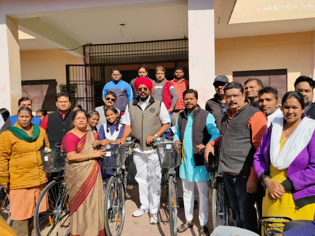 रायपुर । प्रदेश की सरकार लोगो से जनसंपर्क कर उनके समस्याओं का निराकरण कर रहे है भेट मुलाकात कार्यक्रम में जनता से सीधा संवाद कर हर विधानसभा के लोगो तक पहुंच रहे है पायदान के अंतिम व्यक्ति तक छत्तीसगढ़ सरकार के जन कल्याणकारी योजनाओं का लाभ लोग ले रहे है उत्तर विधानसभा के विधायक एवम छत्तीसगढ गृह निर्माण मंडल अध्यक्ष कुलदीप सिंह जुनेजा ने त्रिमूर्ति नगर स्थित शासकीय उच्चतर माध्यमिक विद्यालय में पहुंचकर शैक्षणिक गतिविधियों एवम संस्थान के संचालन के बारे में जानकारी ली छत्तीसगढ सरस्वती सायकल योजना के तहत होनहार 42छात्रों को सायकल वितरण किया एवम सभी बेटियो को उज्ज्वल भविष्य की शुभकामनाए दी श्री जुनेजा ने कहा की बेटियां आज हमारे प्रदेश ही नहीं बल्कि देश विदेश में भी अपने जीत का पताका लहरा रही है हमे हमेशा समानता से बेटियो को शिक्षा के प्रति हमेशा प्रोत्साहित करते रहना चाहिए एवम सामाजिक ,बौद्धिक, शैक्षणिक गतिविधियों में बेटियां भाग ले एवम प्रदेश का नाम रौशन करे