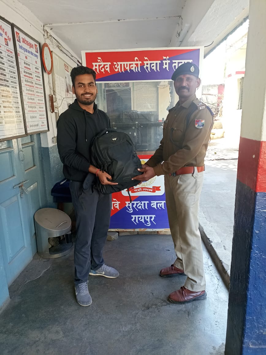 07.01.2022 को मंडल सुरक्षा नियंत्रण कक्ष रायपुर द्वारा रेलवे सुरक्षा बल पोस्ट रायपुर को सूचना मिली थी कि एक यात्री दिव्य शरद खंडेलवाल जो की गाड़ी संख्या 12859 गीतांजलि एक्सप्रेस के कोच नंबर B2 में सीट नंबर 1 में अकोला से राजनांदगांव तक यात्रा कर रहे थे उनका लैपटॉप जो कि एप्पल कंपनी का था गलती से ट्रेन में ही छूट गया है। सूचना पर त्वरित कार्रवाई करते हुए रेलवे सुरक्षा बल पोस्ट रायपुर के सहायक उपनिरीक्षक वीर बहादुर एवं प्रधान आरक्षक मंगल सिंह द्वारा उक्त गाड़ी को रायपुर आगमन पर चेक कर उक्त एप्पल के लैपटॉप कीमत 275000 को सही सलामत उतारा कर पोस्ट में रखा गया तथा यात्री को इसकी सूचना दी गई । 08.01.2023 को यात्री के रेलवे सुरक्षा बल पोस्ट रायपुर में उपस्थित होने पर लैपटॉप को सही सलामत सत्यापन उपरांत सुपुर्द किया गया