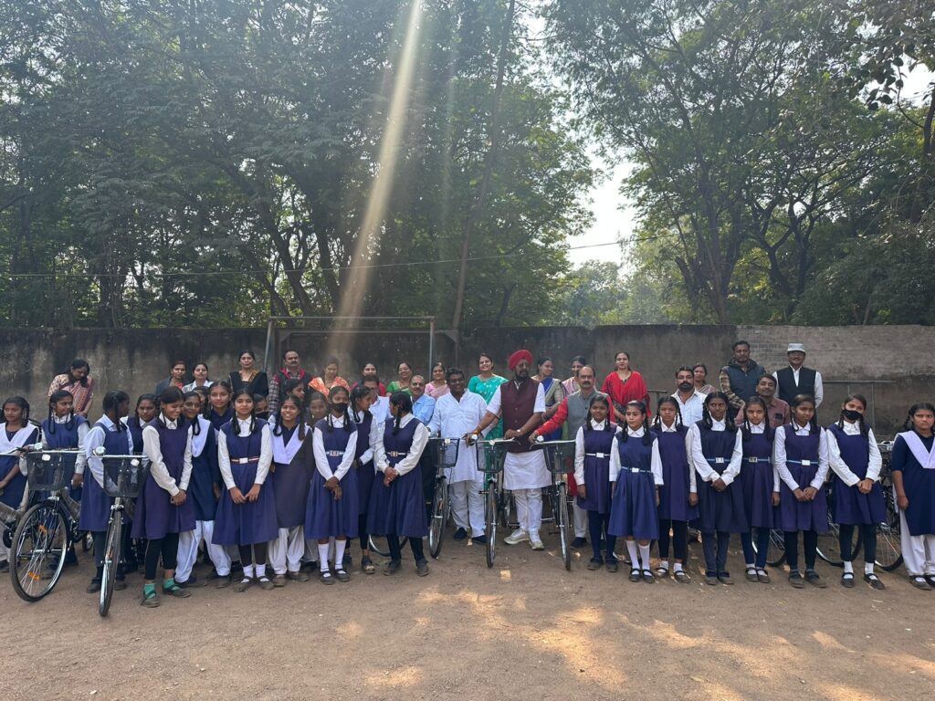 उत्तर विधानसभा अंर्तगत खम्हारडीह क्षेत्र में स्थित शासकीय उच्चतर माध्यमिक शाला में छत्तीशगढ सरस्वती सायकल योजना के तहत उत्तर विधानसभा के विधायक एवम छत्तीसगढ गृह निर्माण मंडल के अध्यक्ष श्री कुलदीप सिंह जुनेजा ने 35 छात्राओं को सायकल वितरण किया शाला विकास समिति के सदस्यों के द्वारा बैठक में लिए गए निर्णय जिसमें शाला की अकादमिक व्यवस्था,भौतिक व्यवस्था शाला जीर्णोद्धार में बच्चो के खेल गतिविधि एवम छात्रों के शारीरिक एवम मानसिक अभिवृद्धि व सुरक्षा हेतु खेल मैदान समतलीकरण , खेल के विभिन्न उचित स्थान बॉलीबाल कोर्ट ,खोखो कोर्ट, बैडमिंटन कोर्ट कब्बड़ी ग्राउंड की मांग व इसके आलावा भवन के सम्मुख शेड निर्माण, आहाता निर्माण जिससे असामाजिक तत्वों का जमावड़ा न हो इसके आलावा अहाता जर्जर अवस्था में होने के कारण असामजिक तत्वों के कारण अप्रिय घटनाओं से बचने के लिए सीसी टीवी कैमरे लगाए जाने की मांग ,पानी की समस्या एवम शौचलय में पाइप लाइन की व्यवथा करने की मांग क्षेत्र के स्थानीय विधायक श्री कुलदीप सिंह जुनेजा को ज्ञापन सौंपकर किया विद्यालय प्रांगण में पुराने एवम जर्जर अवस्था में भवने खाली पड़ी थी शिक्षकों एवम शाला विकास समिति के सदस्यों के आर्थिक सहयोग एवम कुशल निर्णय से शासन के सहयोग से पुराने भवन का 12लाख रु में जीर्णोद्धार कर अनुमानित लागत लगभग करोड़ो का भवन निर्माण कार्य चल रहा है पूर्व पार्षद एवम शाला विकास समिति के सदस्य राकेश धोत्रे ने 35सीलिंग फैन सहयोग करने की भी बात कही श्री जुनेजा ने भवन एवम मांगो को लेकर उचित कार्यवाही करने का आश्वासन दिया इस अवसर पर क्षेत्र के पार्षद रोहित साहू,पूर्व पार्षद राकेश धोत्रे,शाला विकास समिति अध्यक्ष प्रेम लुनावत , प्राचार्य दीपक दुबे,दमयंती वर्मा,अनुभूति दुबे,अरुणा धीवर,मालती निर्मलकर, रेणु तिवारी, चंद्रावती घृतलहरे,भारती सिंह, दीप्ति पाटले,सुमन साहू,अविनाश,शैलेंद्र पटले,घनश्याम साहू सहित छात्र छात्रा उपस्थित थे।