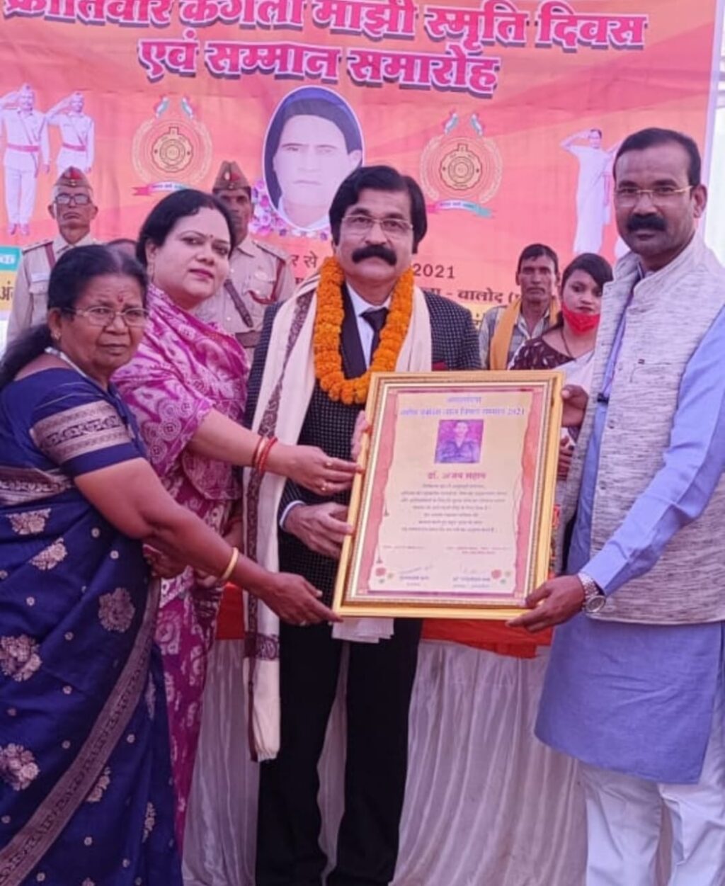 बालोद । कंगला मांझी की स्मृति में मांझीधाम (बालोद) में आयोजित चार दिवसीय कार्यक्रम में रायपुर के सुविख्यात विशेषज्ञ चिकित्सक व समाजसेवी प्रो.डॉ अजय सहाय को शहीद दुर्वासा लाल निषाद सम्मान से सम्मानित किया गया। यह सम्मान उन्हे छत्तीसगढ के संसदीय सचिव कुंवर सिंह निषाद व राजमाता श्रीमती फुलवादेवी कांगे के कर कमलों द्वारा प्रदान किया गया।