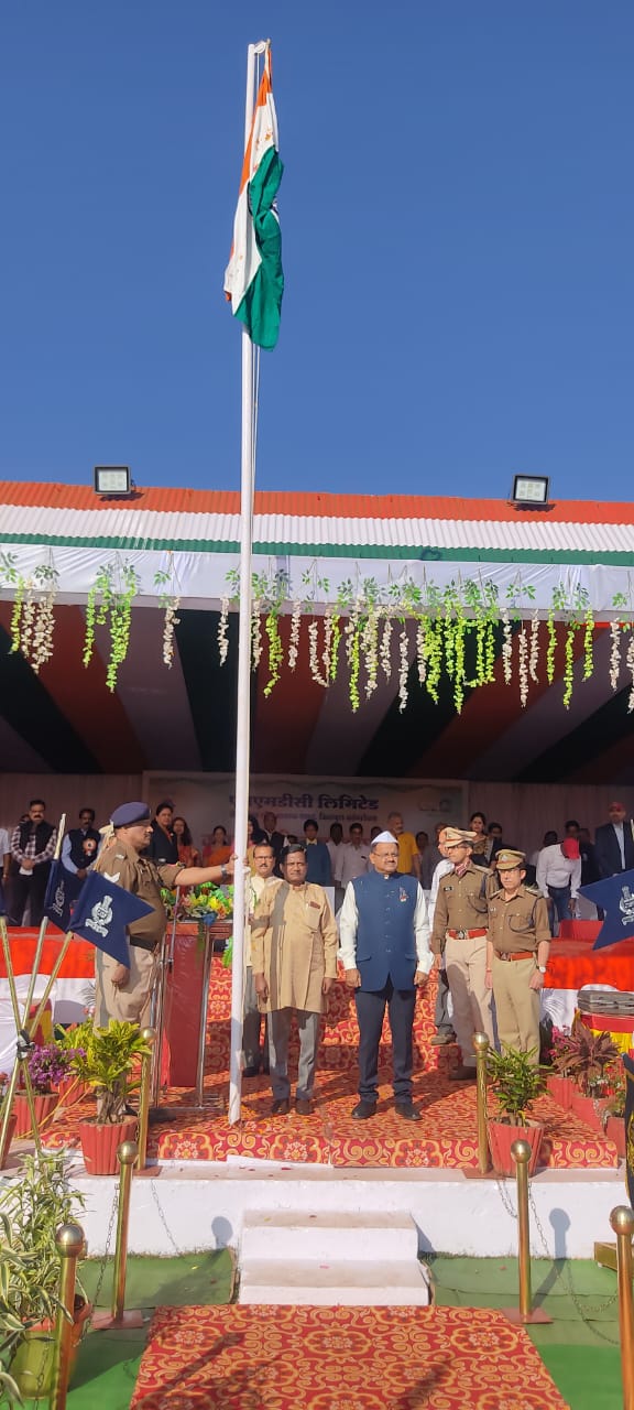 किरंदुल फुटबॉल ग्राउंड में देश का 74 वां गणतंत्र दिवस हर्षोल्लास के साथ मनाया गया,मुख्य अतिथि विनय कुमार, मुख्य महाप्रबंधक ने किया ध्वजारोहण