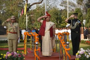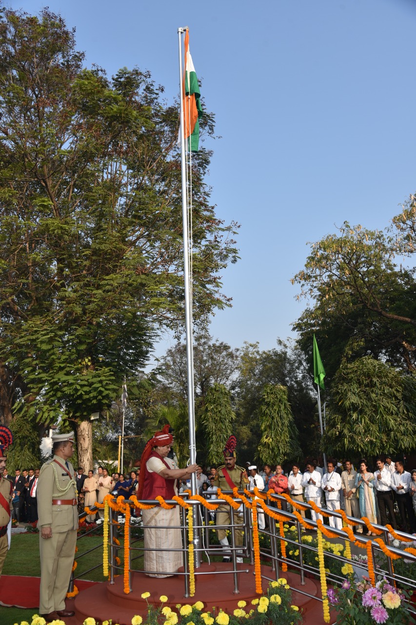 रायपुर, 26 जनवरी 2023/ राज्यपाल सुश्री अनुसुईया उइके ने 74वें गणतंत्र दिवस के अवसर पर आज सुबह राजभवन में ध्वजारोहण किया। उन्होंने परेड का निरीक्षण कर सलामी ली। राज्यपाल ने इस अवसर पर राजभवन के सभी अधिकारियों एवं कर्मचारियों, उनके परिजनों तथा बच्चों को गणतंत्र दिवस की शुभकामनाएं दी। राज्यपाल ने बच्चों को चॉकलेट भी बांटे।