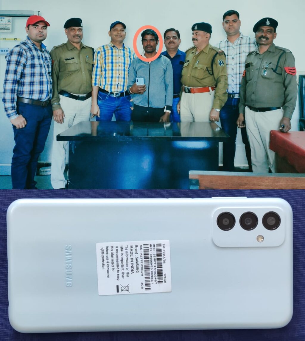 रेसुब पोस्ट रायपुर प्रभारी एम.के. मुखर्जी के नेतृत्व में, मंडल टास्क टीम रेसुब प्रभारी उपनिरीक्षक ए जेड चौधरी, प्र आ. व्ही सी बंजारे , आ. देवेश सिंह, आ. संदीप गिरी व जीआरपी थाना रायपुर के प्र. आ. पी. लटारे, प्र. आ. व्ही के टोप्पो , व हमराह स्टाफ के साथ मुखबिर सूचना पर एक व्यक्ति को रायपुर रेलवे स्टेशन के मेन गेट नंबर 02 के सामने आटो स्टैंड के पास चोरी का मोबाइल बेचने के फिराक में ग्राहक की तलाश करते देख कर घेरा बंदी कर पकड़ा गया, पूछताछ करने पर अपना नाम पता- सोना राम कैवर्त्य ,पिता -धनी राम कैवर्त्य , उम्र-32 साल, निवासी- ग्राम मोहतरा, वार्ड नं 05,थाना- कसडोल, जिला- बलौदा बाजार (छ ग) का रहने वाला बताया ,उसके पास 01 नग मोबाइल मिला जिसे गाड़ी संख्या 12833 अहमदाबाद हावड़ा एक्सप्रेस से स्लीपर कोच से किसी सोए हुए यात्री का सीट पर रखा मोबाइल फ़ोन चोरी करना स्वीकार किया उसके पास सैमसंग गैलेक्सी F 13 , ब्लू कलर कीमती 15000/ रुपया,( पन्द्रह हजार रुपया ) उसके कब्जे से बरामद कर जप्त किया गया । एवं उक्त आरोपी को गिरफ्तार कर जीआरपी थाना रायपुर लाया गया, उक्त आरोपी के विरुद्ध जीआरपी थाना रायपुर द्वारा अपराध क्रमांक-05/2023 धारा- 41(1+4) CrPc, 379 आईपीसी दिनांक 04-02-2023 मामला पंजीबद्ध किया गया।