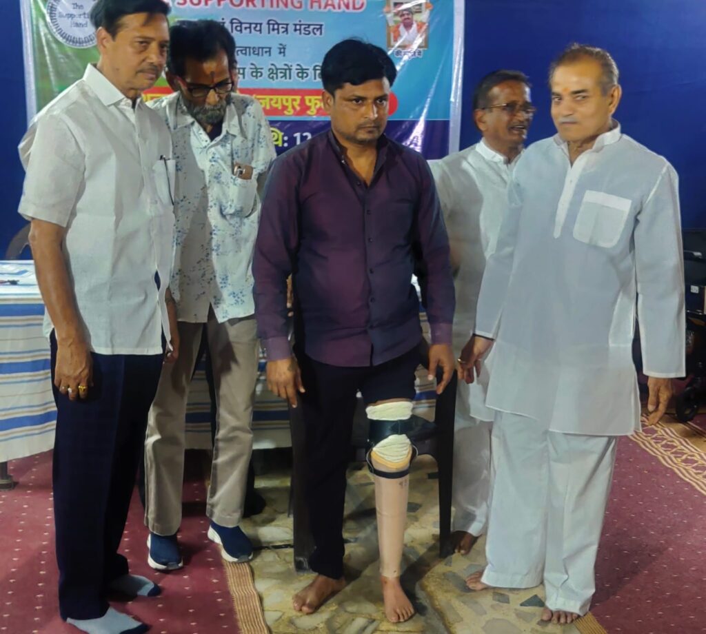 सेवाकार्य युवावस्था में ही करना चाहिए । बुढ़ापे या प्रौढ़वस्था का इंतज़ार नही करना चाहिए । कल किसने देखा है , अगले पल क्या होगा कोई बता नही सकता , इसलिए अच्छे कार्य , सेवा , धार्मिक कार्य जब मन हो तब ही कर लेना चाहिए , उक्त उदगार श्री नेमीचंद सोनी ने श्री विनय मित्र मण्डल के स्थायी वर्कशॉप में सपोर्टिंग हैंड्स ने स्व विजय सोनी स्मृति में जयपुर पैर वितरण अवसर पर व्यक्त किए । समारोह में नेमीचंद सोनी परिवार की सौजन्यता से 19 पैर कटे दिव्यांगों को जयपुर पैर वितरित किए गए । विगत एक सप्ताह से पचपेड़ी नाका महावीर सेवा सदन में ठहरे दिव्यांगों के आवास व भोजन की व्यवस्था संस्था द्वारा निःशुल्क की जाती है । शिविर में हरीश कोसले खैरागढ़ , मैनून बीबी रामानुजगंज , नेमन दास दुर्ग , राम मार्कण्डे गरियाबंद , परमेश्वर भिलाई , मनोज महिलांग कोरबा , पुनीत कोसले बलौदाबाजार , रमेश साहू पाटन , योगेश भुआर्य राजनांदगांव , कुमारी निषाद भाटापारा , रवि ध्रुव राजिम , ज्ञानेश्वर बंजारे खरोरा , दिनेश पटेल कुसमूंदा , अंजनी सोनी रायपुर , केसर पटेल मगरलोड , निलेश्वर पैकरा जशपुर , बाबू मरकाम बलरामपुर , नंद यादव भाटापारा , रंजीत सिंग अम्बिकापुर , को सपोर्टिंग हैंड्स के सदस्यों द्वारा जयपुर पैर वितरित किए गए । जयपुर पैर वितरण समारोह में श्री विनय मित्र मण्डल के अध्यक्ष महावीर मालू , उपाध्यक्ष राजेश कानुगा , पूर्व अध्यक्ष महेन्द्र कोचर , खेमराज बैद , गौरव कोचर , नेमीचंद सोनी , विवेक सोनी , सी ए विजय गोलछा , नेहल जैन , सौमित्र बाजपेयी , सौरभ बैद , प्रियंक झाबक , मधुर बैद , वसीम आलम , अंकित आहूजा , प्रथम सोनी , पीयूष कोठारी , प्रथम जैन , यश सोनी , मौलिक भंसाली , अजय , संजय , रवि सोनी उपस्थित थे । कार्यक्रम का संचालन सी ए विजय गोलछा ने किया ।