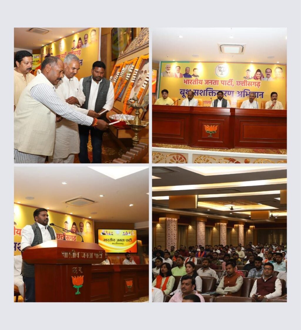 रायपुर । भारतीय जनता पार्टी के अवहान पे आज भारतीय जानता युवा मोर्चा के रायपुर और दुर्ग संभाग की बैठक कुशभाऊ ठाकरे परिसर डुमातारी रायपुर में बैठक आहूत की गई थी। इस बैठक में प्रमुख सूप से प्रदेश संगठन महामंत्री पावन साय ,प्रदेश अध्यक्ष रवि भगत ,भाजपा प्रदेश प्रवक्ता अनुराग सिंह देव , प्रदेश मंत्री रामू राव, प्रदेश प्रशिक्षण प्रमुख अवधेश जैन , भाज्युमों प्रदेश महामंत्री उपकार चंद्राकर जी, पूर्व भाजपा संभाग संगठन मंत्री रूपनारायण सिन्हा उपस्थित थे।