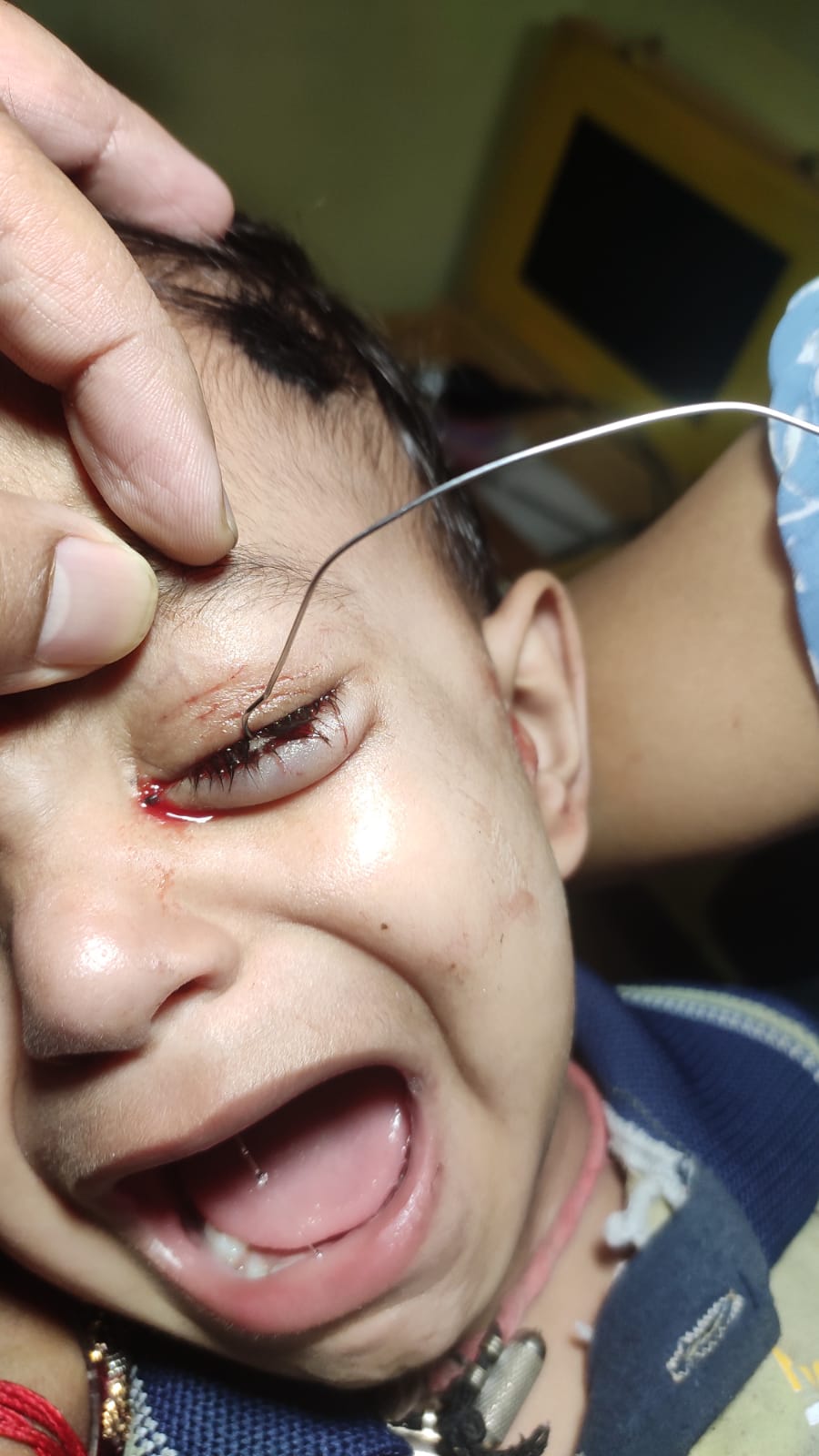 रायपुर अप्रैल : रायपुर निवासी दो वर्षीय दिव्यांश राठौर खेलते-खेलते आँखों में रिमोट कार का तार फंसा बैठा। रात ११ बजे श्री गणेश विनायक ऑय हॉस्पिटल में समय पर इलाज मिलने पर , केवल तार उसकी पलक को नुकसान पंहुचा पाया। डॉ चारुदत्त कलमकर और डॉ श्रीनिवास ने समय रहते बड़ी ही सावधानी और धैर्यता के साथ बच्चे का इलाज सफलतापूर्वक करा।