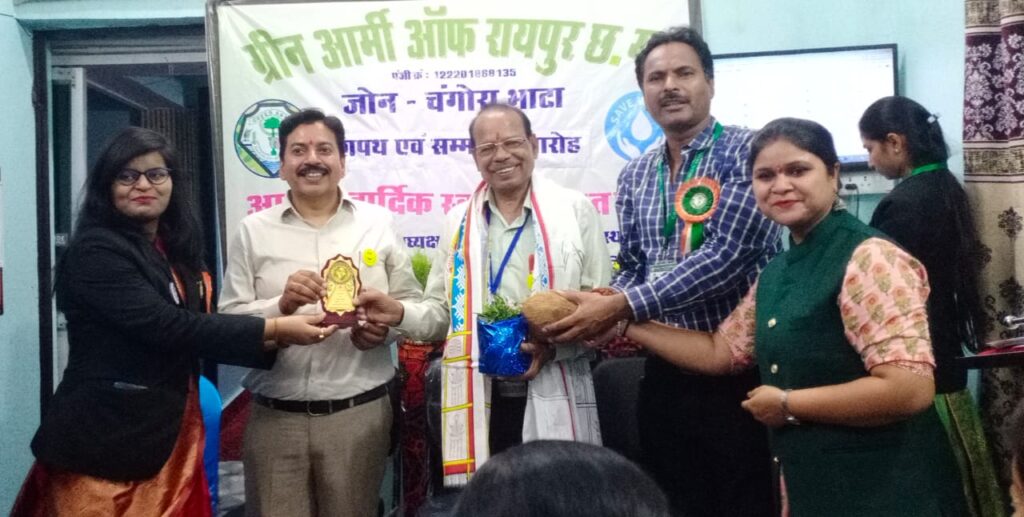 इस अवसर पर चंगोराभाठा जोन संरक्षक श्री के आर वर्मा जी को उनके उत्कृष्ट कार्यो हेतु सम्मनित किया गया । कार्यक्रम में स्वागत उद्बोधन जोन अध्यक्ष कविता व संचालन श्रीमती रात्रि लहरी चांगोरा भाटा जोन प्रभारी द्वारा किया गया ।