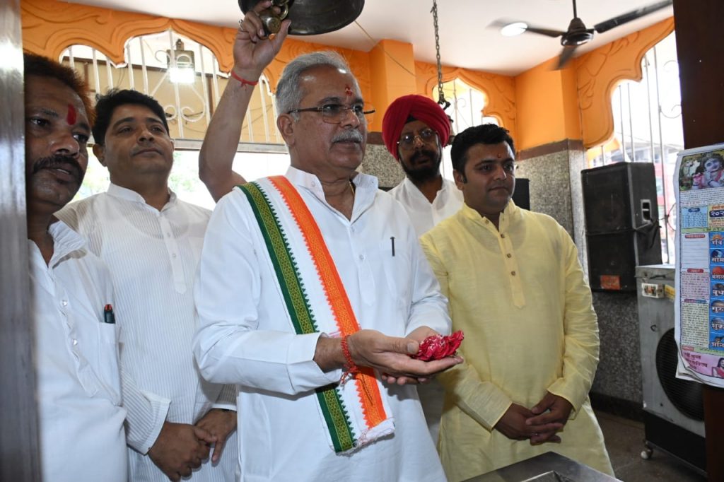 रायपुर उत्तर विधानसभा अंतर्गत भेट मुलाकात कार्यक्रम में जाने से पहले छत्तीसगढ़ के मुख्यमंत्री भूपेश बघेल , रायपुर उत्तर विधायक कुलदीप सिंग जुनेजा, महापौर एजाज ढेबर , शहर अध्यक्ष गिरीश दुबे , वार्ड पार्षद अमितेष भारद्वाज ने भगवान हनुमान के दर्शन किये।