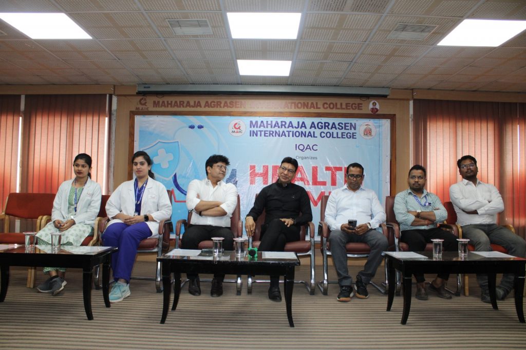 महाराजा अग्रसेन इंटरनेशनल कालेज में छात्रों के सम्पूर्ण व्यक्तित्व विकास के लिए प्रतिबद्ध है। किसी भी व्यक्ति का मानसिक विकास तब तक पूर्ण नहीं हो सकता, जब तक कि उसका शारीरिक स्वास्थ्य ठीक ना हो। एक समय था जब बीमारियों की उम्र तय हुआ करती थी, बदलते परिवेश, बदलते वातावरण, प्रदूषण एवं अव्यवस्थित जीवन शैली के चलते बड़ी उम्र में होने वाली बीमारियों ने आज युवाओं को भी अपनी गिरफ्त में ले लिया है। जिसमें युवाओं को शारीरिक के साथ-साथ मानसिक परेशानियों को भी झेलना पड़ता है। बीमारियों के उपचार से ज्यादा जरूरत है बीमारियों से बचाव की और यह तभी संभव है जब समय≤ पर सम्पूर्ण हेल्थ चेकअप करवाया जाए। इसी के मद्देनजर मैक काॅलेज में मैक प्रबंधन के द्वारा समय≤ पर हेल्थ चेकअप कैम्प लगाया जाता है। इसी कड़ी में आज दिनांक 20/04/2023 को श्री मेडिशाइन हाॅस्पिटल के सौजन्य से हैल्थ कैम्प आयोजित किया, जिसमें शरीर विज्ञान से जुड़े लगभग सभी क्षेत्रों के विशेषज्ञों जिसमें डाॅ. सुशील शर्मा (आर्थोपेडिक), डाॅ. स्नेहा साहू (डाइट एवं न्यूट्रिशन), डाॅ. प्रकाश पटेल (फिजियोथेरेपिस्ट), डाॅ. राधेश्याम चैरसिया (डेंटिस्ट), डाॅ. साक्षी शुक्ला (ग्यानकोलाॅजिस्ट) एवं अपनी सहयोगी डाक्टर्स ने अपनी सेवाएं दी तथा छात्र-छात्राओं का हेल्थ चेकअप किया।