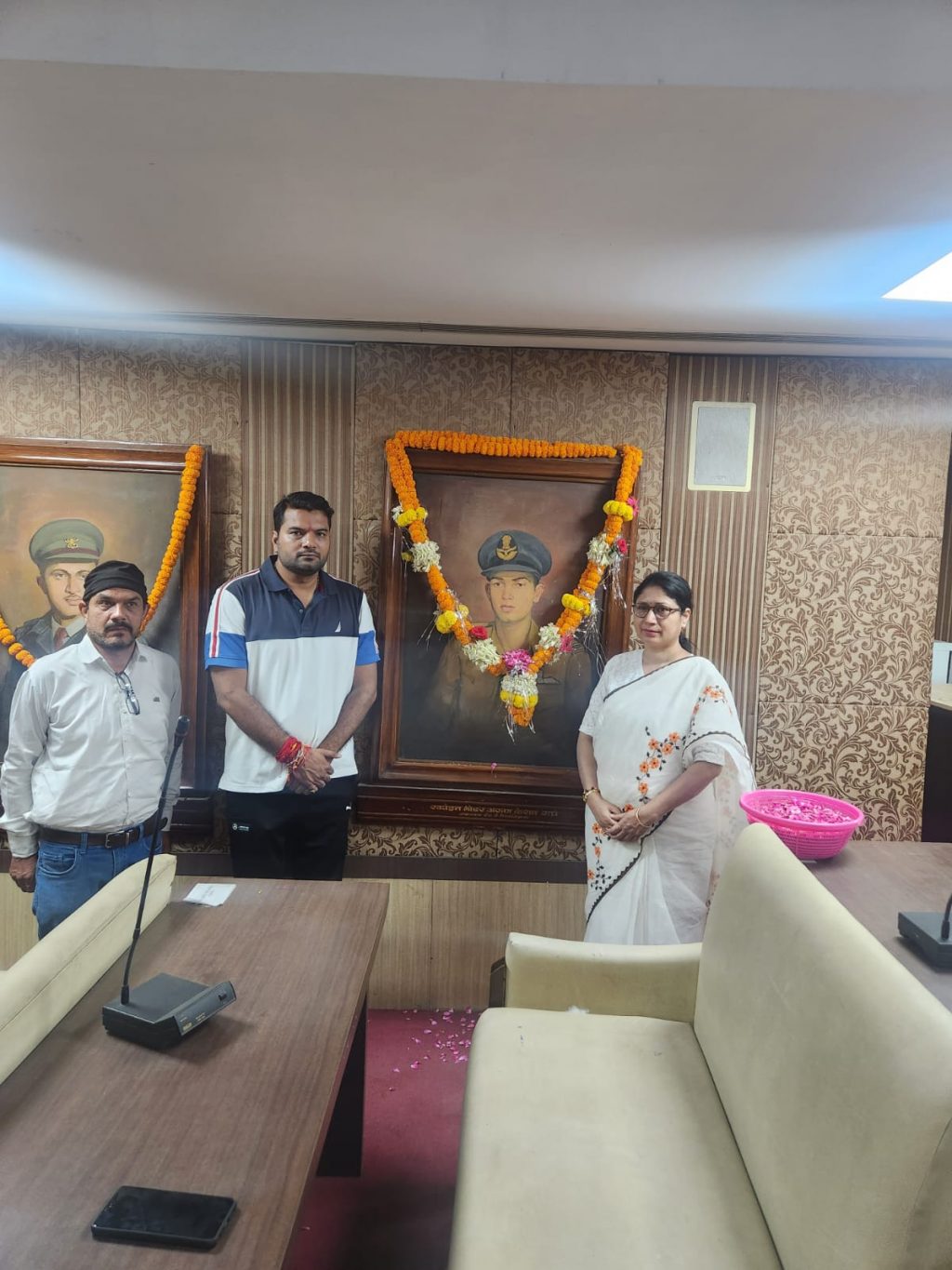 0रायपुर निवासी शहीद अरुण केशव सप्रे की जयन्ती पर नगर निगम में संस्कृति विभाग अध्यक्ष आकाश तिवारी, शहीद जेष्ठ पुत्र रूपेश सप्रे, पुत्र वधु अनुराधा सप्रे ने दी श्रद्धांजलि,