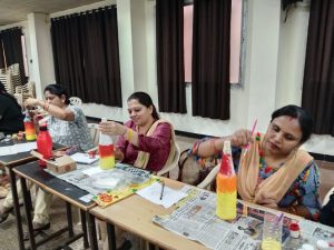 मैक साॅलिटेयर में आर्ट एण्ड क्राफ्ट प्रशिक्षण के दौरान मिस. निवेदिता पाण्डा ने महिलाओं को क्ले से बाॅटल डिजाईन, नेमप्लेट आदि बनाना सिखाया।