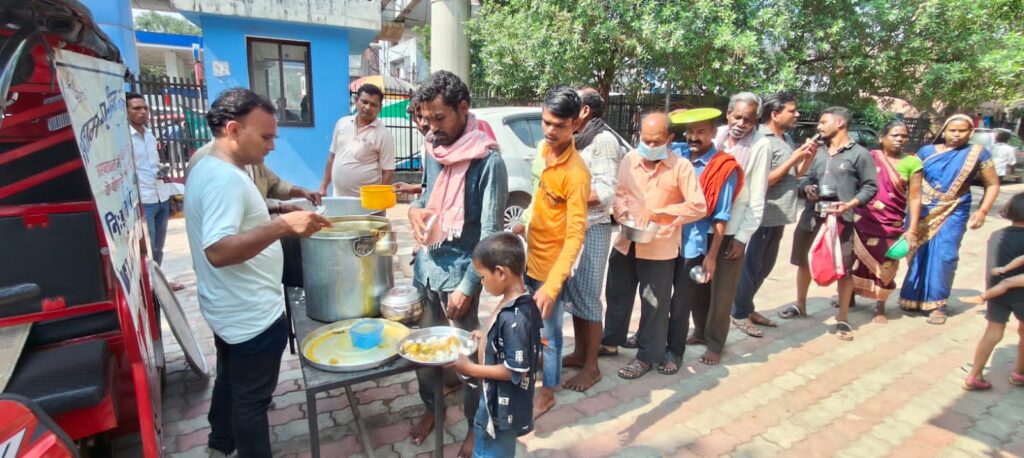 रायपुर। संस्था, अवाम ए हिन्द सोशल वेलफेयर कमेटी के तत्वावधान में संस्थापक, मो. सज्जाद खान के कुशल नेतृत्व में संचालित सुपोषण अभियान अंतर्गत आज दिनांक 29 अप्रैल 2023 को नियमित रूप से वितरित किये जा रहे निःशुल्क भोजन वितरण कार्य के 1126वां दिन संस्था द्वारा आर्थिक रूप से कमजोर सैकड़ों निर्धन जरूरतमंदों और अम्बेडकर अस्पताल तथा डीकेएस अस्पताल में दूर दराज से इलाज के लिए आए मरीजों के परिजनों को निःशुल्क भोजन वितरण का कार्य पूर्ण किया गया, जिसमें संस्थापक मो. सज्जाद खान के साथ ज़ुबैर खान, योगेश्वर सिन्हा, फराज खान, अनमोल जैन एवं राजकुमार साहू ने आज अपना सहयोग प्रदान किया। ।