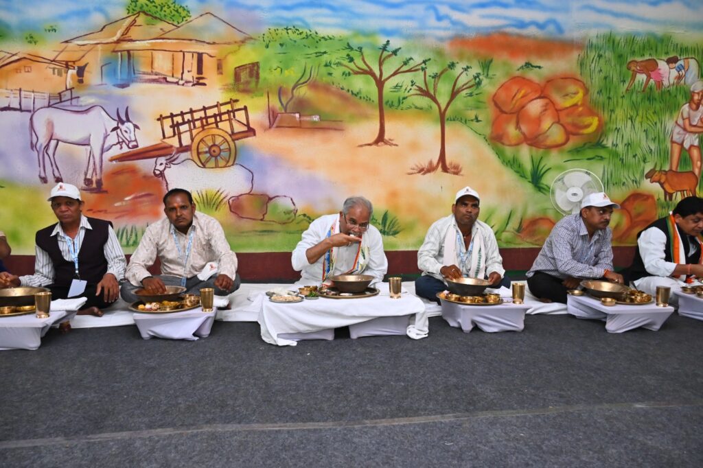 रायपुर, 01 मई 2023/ मुख्यमंत्री भूपेश बघेल ने श्रमिक दिवस के अवसर पर श्रमवीरों के सम्मान में प्रदेश भर से आये हज़ारों श्रमिकों के साथ आज बोरे-बासी का आनंद लिया। राजधानी रायपुर के साइंस कॉलेज मैदान में आयोजित बोरे-बासी तिहार के सामूहिक भोज में मुख्यमंत्री ने अथान, चटनी, भाजी, बड़ी-बिजौरी और गोंदली के साथ जमीन में बैठकर बोरे-बासी खाई और श्रमिक दिवस मनाया।