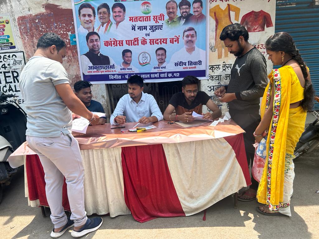 रायपुर । छत्तीसगढ़ प्रदेश युवा कांग्रेस के प्रदेश अध्यक्ष आकाश शर्मा एवं पार्षद प्रत्याशी संदीप तिवारी के संयुक्त नेतृत्व में मतदाता सूची में नाम जुड़वाने हेतु एवं कांग्रेस पार्टी के सदस्य बनाने हेतु शिविर का आयोजन पंडित सुंदरलाल शर्मा वार्ड क्रमांक 42 में किया गया। कांग्रेस नेता संदीप तिवारी ने कहा कि छत्तीसगढ़ में कांग्रेस की सरकार छत्तीसगढ़ वासियों के लिए बहुत अच्छा कार्य कर रही है, चाहे हम युवाओं की बात करें या किसानों की बात करें, नित नये-नये उपयोगी योजनाओं के साथ छत्तीसगढ़ सरकार पूरे भारत में एक मॉडल के रूप में आगे आया है। उन्होंने कहा कि छत्तीसगढ़ में भूपेश बघेल की कांग्रेस सरकार विगत् 04 वर्ष 06 माह से लगातार आमजन के हित में कार्य कर रही है, मुख्यमंत्री भूपेश बघेल के निर्देश पर छत्तीसगढ़ सरकार ने विभिन्न विभागों में भर्ती की प्रक्रिया शुरू कर दी है एवं युवाओं के लिए बेरोजगारी भत्ता का शुरू करना अपने आप में एक बड़ा कदम है, साथ ही छत्तीसगढ़वासी कांग्रेस के विभिन्न योजनाओं से भी लाभान्वित हुए हैं। संदीप तिवारी ने बताया कि आज कांग्रेस पार्टी में जुड़ने के लिए युवा वर्ग काफी ज्यादा उत्साहित हैं, जिसे देखते हुए आज से ही कांग्रेस पार्टी में नये सदस्य बनाने हेतु विभिन्न वार्डों के साथ-साथ पं. सुन्दर लाल शर्मा वार्ड क्र.42 में शिविर का आयोजन किया जा रहा है। साथ ही छत्तीसगढ़ में होने वाले चुनाव से पूर्व ही नागरिकों से अपील कर मतदाता सूची में नाम जुड़वाने हेतु भी अनुरोध किया जा रहा है और वार्ड क्र.42 में सुबह 11ः00 बजे से शाम 5ः00 बजे तक शिविर आयोजित कर वार्ड के नागरिकों को आवश्यक दस्तावेज के साथ आमंत्रित कर उनका नाम मतदाता सूची में जोड़ने का कार्य किया जा रहा है। आज से प्रारंभ इस आयोजित शिविर में छत्तीसगढ़ प्रदेश युवा कांग्रेस के प्रदेश अध्यक्ष आकाश शर्मा एवं पार्षद प्रत्याशी संदीप तिवारी के साथ वार्ड अध्यक्ष डोमेश शर्मा, युवा कांग्रेस दक्षिण विधानसभा अध्यक्ष समीर भट्ट, पूर्व वार्ड अध्यक्ष रोहित साहू, भूपेन्द्र जलछत्री, हर्ष एडवान, कृष्णा ताम्रकार जितेंद्र यादव, सागर सैनिक, निशांत राठौर, किशन देवांगन, हिमांशु देवांगन, सेवा साहू, अभिनव शर्मा आदि मुख्य रूप से उपस्थित हुए।