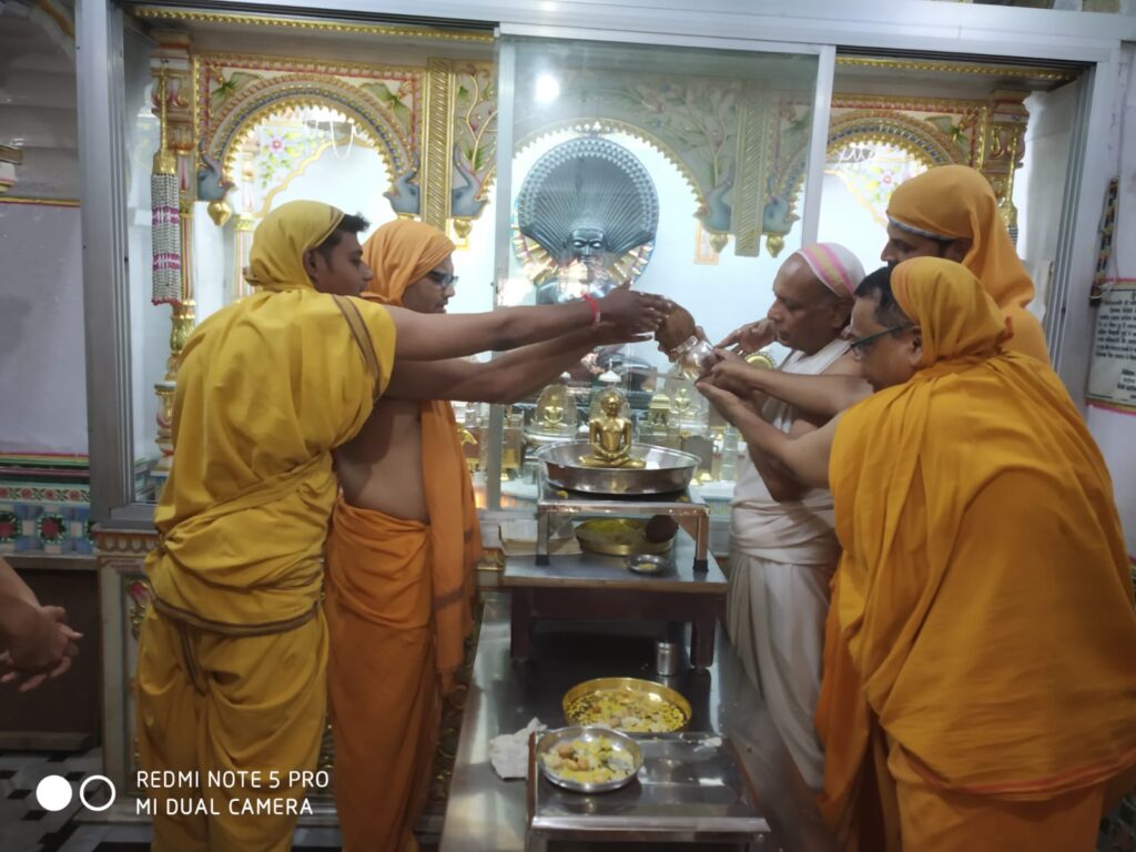 ज्येष्ठ शुक्ल अष्टमी के अवसर पर चैतन्य चमत्कारिक 1008 पार्श्वनाथ बेदी मे 1008 श्री महावीर भगवान का रजत कलशो सें अभिषेक