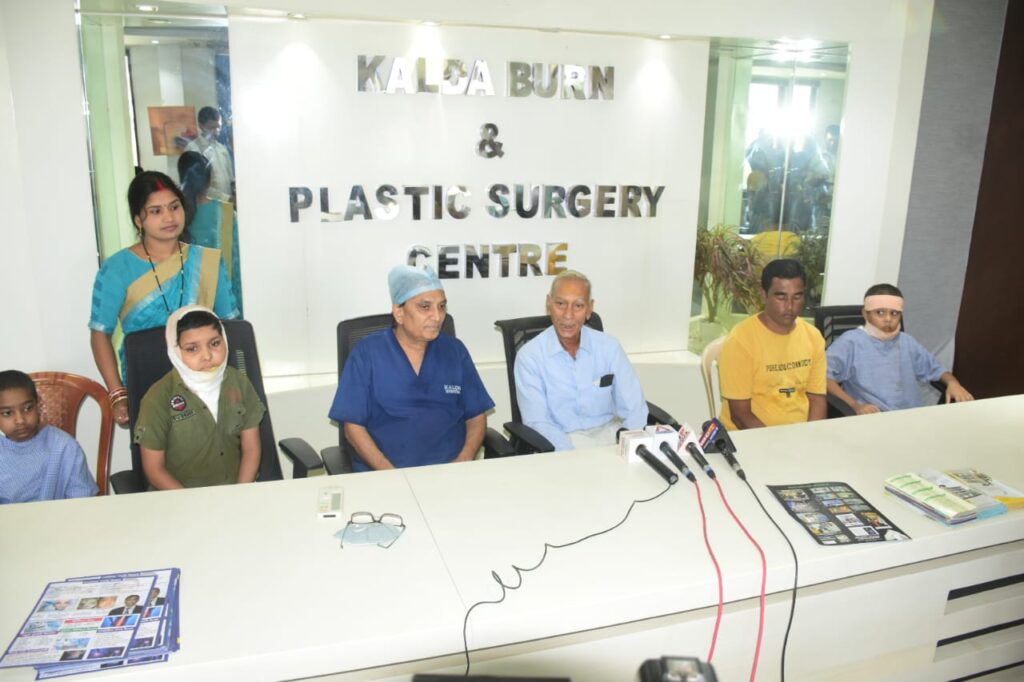 रायपुर पचपेढी नाफा, कलर्स माल के आगे स्थित कालडा वर्ग एवं प्लास्टिक सर्जरी सेंटर (छ.ग.) शासन व छत्तीसगढ़ विद्युत मंडल से मान्यता प्राप्त व एनएबीएच सर्टिफाइड) के संचालक व अंचल के प्रसिद्ध कॉस्मेटिक व रिकन्स्ट्रटीव सर्जन डॉ. सुनील कालड़ा ने 11 वर्षीय प्रियाशु प्रधान (रायगढ़ निवासी) व उसका भाई दीपावली में पटाखा (अनार) जला रहे थे व अनार में आग लगाकर दूर चले गये मगर कुछ देर तक अनार नहीं चला तो प्रियांशु अनार के पास आया। और अनार फट गया मैं और जैसे ही अनार फटा तो प्रियांशु के कपड़े में आग लग गई में और प्रियांशु का शरीर जल गया। जैसे ही प्रियाशु के शरीर में आग लगी तो उसे पास के अस्पताल ले गये व एक-दिन भी रख कर ईलाज किया गया, मगर मरीज में कोई सुधार नहीं दिखा मैं और मरीज की हालत में और खराब होते चली गई, मरीज की तबीयत खराब होता देख परिजन मरीज को काला प्लास्टिक कॉस्मेटिक सर्जरी एवं बर्न सेंटर रायपुर लाया गया एवं गहन इलाज में रखकर ईलाज किया गया। प्रियांशु का करीब 2-3 माह तक ईलाज चला उसके बाद स्वस्थ होकर सकुशल घर गया। उसका बेहतर ईलाज कर उसे नई जिंदगी दी। इसी तरह 10 वर्षीय भाव्य श्रीवास (खैरागढ़ निवासी) 17 मार्च को परफ्यूम स्प्रे को माचिस से खेलते हुए 35 से 40 प्रतिशत छाती जल गई जिसे उसी की जांघ से स्कीन निकालकर लगाई गई है। उसका भी बेहतर ईलाज कर उसे नई जिंदगी दी। इसी तरह 6 वर्षीय सौम्या वर्मा जीकि 27 अप्रैल को अपने घर के आंगन में खेलते हुए संतुलन बिगड़ जाने के कारण जलते हुए दिये में गिर गई जिससे उसके कपड़े जल गये में और व भी झुलस गई । उसे कालड़ा हॉस्पीटल में भर्ती कराया गया। सौम्या की ग्राफ्टिम कर उसे बचाया गया। व 2 बच्चें अौर साईबा बानो व शनाया जैन जोकि खेलते समय किसी झुलस गये थे उन्हें भी नया जीवन दिया। बच्चे 45 से 70 प्रतिशत तक जले थे।