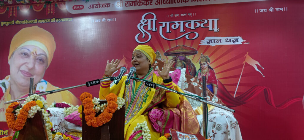 श्रीरामकिंकर आध्यात्मिक विचार मिशन द्वारा सिंधु पैलेस शंकरनगर में आयोजित श्रीरामकथा ज्ञान यज्ञ में दीदी मां मंदाकिनी ने मानस के प्रसंगो को मानव जीवन से जोड़कर कई बातें बतायी,समस्त वंदनों में से भगवान के नाम की वंदना सबसे विशिष्ट है। भगवान श्रीराम भी अगर अपनी वंदना करेंगे तो वह उतना विशिष्ट नहीं होगा जितना नाम की वंदना करने से मिलेगा। सबसे अधिक साधकों में कोई है तो वह है राम के नाम की। वे हर काल में विद्यमान है, सर्वव्यापी भी है, हम सबके हृदय में भी वह विराजमान है। ईश्वर हमारे ह्दय में सोया हुआ है। ईश्वर को जगाने के लिए क्या करना होगा हमें उन्हे उठाने के लिए उनके नाम से पुकारना होगा। लेकिन किस नाम से उन्हें पुकारना यह हमें पता नहीं है और इसीलिए हम भटक रहे हैं।