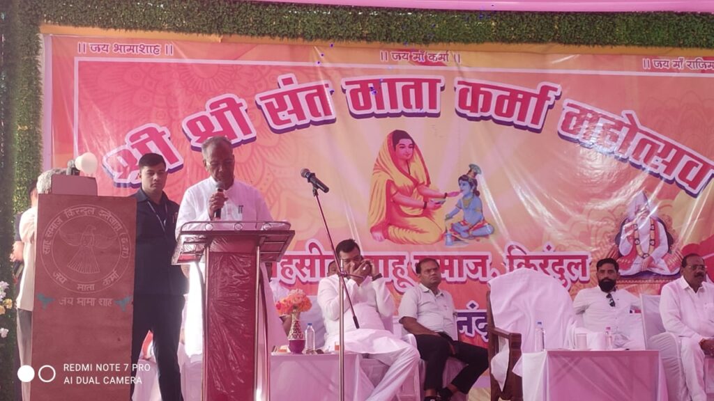 एस एच अज़हर अमन पथ दंतेवाडा किरंदुल// साहू समाज भवन किरंदुल दंतेवाडा में कर्मा महोत्सव के उपलक्ष्य पर 06 जून को संत माता कर्मा एवम् अन्य देवी देवताओं के नव निर्मित भव्य मंदिर में प्राण प्रतिष्ठा किया जा रहा है कार्यक्रम के प्रमुख अतिथि के रूप में गृह एवं लोक निर्माण मंत्री छ.ग शासन ताम्रध्वज साहू शामिल हुए।इस कार्यक्रम में समाज के लोगों ने मंत्री जी को माला पहनाकर और श्रीफल एवं शाल भेंटकर उनका अभिनदंन किया। कार्यक्रम के इस अवसर पर गृहमंत्री ताम्रध्वज साहू जी भक्त कर्मा माता के नव निर्मित मंदिर पहुंच पूजा अर्चना किए तत्पश्चात मंच ग्रहण कर समाज के लोगो ने उनका स्वागत किया जिसमे सर्वप्रथम नगर पालिका अध्यक्ष ने अपना अभिभाषण दिया और साहू समाज भवन से लेकर कर्मा माता मंदिर के स्थापना की जानकारी दी तत्पश्चात संदीप साहू जी तेलंगाना बोर्ड प्रदेश अध्यक्ष ने माता कर्मा के द्वारा समाज में उनकी भूमिका का वर्णन किया तत्पश्चात कांग्रेस जिला अध्यक्ष अवधेश सिंह गौतम ने इस कार्यक्रम के बारे में अपना विचार रखा उसके बाद साहू समाज प्रदेश अध्यक्ष टहल साहू से समाज को परंपरा एवं सभी समाज को लेकर चलने की अपील की तत्पश्चात माननीय मंत्री ने अपने अभिभाषण में कहा की साहू समाज को अपनी मेहनत और त्याग से संगठित किया, आज वह समाज शिक्षा, कृषि व व्यवसाय सहित सभी क्षेत्रों में संगठित तरीके से काम कर आगे बढ़ रहा है और दूसरे समाज भी उनका अनुकरण कर रहे हैं। साहू समाज ने समाज को नई ऊंचाई देने का जो प्रयास किया गया है, वह सभी समाज के लिए अनुकरणीय है। और उन्होंने नि:स्वार्थ भाव से समाज के विकास के लिए सेवा करने की बात कही साथ ही समाज को एक संगठित और बड़े समाज केे रूप में जाना जाता है। उन्होंने सामाजिक समरसता की भावना को और अधिक सुदृढ़ बनाने की बात कही।इस साहू समाज के कार्यक्रम में किरंदुल नगर पालिका अध्यक्ष का बहुत बड़ा योगदान रहा जिनके बिना कर्मा माता का भवन बनना संभव नही था साथ ही इस कार्यक्रम में नगर पालिका अध्यक्ष मृणाल राय के द्वारा साहू समाज के धार्मिक , सांस्कृतिक कार्यक्रम हेतु साहू समाज के मांग के आधार पर अध्यक्ष महोदय जी के द्वारा 50.00 लाख रूपये हेतु मंत्री जी को मांग पत्र दिया गया इस कार्यक्रम में तहसील साहू समाज अध्यक्ष टीकम साहू, तपन दास, अमृत टंडन,गायत्री साहू,राजू कुंजाम , मीना मांडवी,दंतेश, मुख्य नगर पालिका अधिकारी सुनील जैन, टी. आर. सिन्हा, दीपक गोस्वामी, डी.एस.साहू जॉर्डन राम, जिला प्रशासन, पुलिस प्रशासन, नगर पालिका कर्मचारी एवम नगरवासी उपस्थित थे |