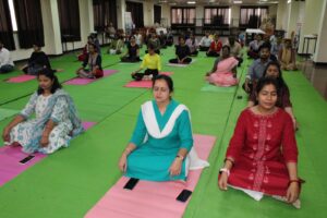 ब्रम्हकुमारी स्नेहमयी द्वारा योग से ही आत्मा को परमात्मा से कैसे जोड़ा जा सकता है, कैसे खुद को संयम, राजयोग, चिंता से राहत, प्रतिरोधक क्षमता में सुधार ,एवं मन को संयम में रखने से जुडे विशेष बातों पे चर्चा हुई। ब्रम्हकुमारी सिमरन ने सभी स्टाफ एवं स्टूडेट को मेडिटेशन एवं आत्म सयंम होना सिखाया। ट्रेनर शुभी शारदा ने इस कार्यक्रम में विद्यार्थीयों एवं प्राध्यापकों को विभिन्न आसन जैसे पद्मासन, वज्रासन, सिद्धासन, मत्स्यासन,मकरासन, मार्जरी आसन, शीर्षासन, शवासन, भ्रामरी, भस्त्रिका जैसे कई महत्वपूर्ण आसन एवं प्राणायाम का अभ्यास कराया। कार्यक्रम में योग अभ्यास के साथ ही साथ योग की महत्ता को दर्शाते हुए उनसे होने वाले लाभ के बारे में विद्यार्थियों एवं प्राध्यापकों को परिचित भी कराया।