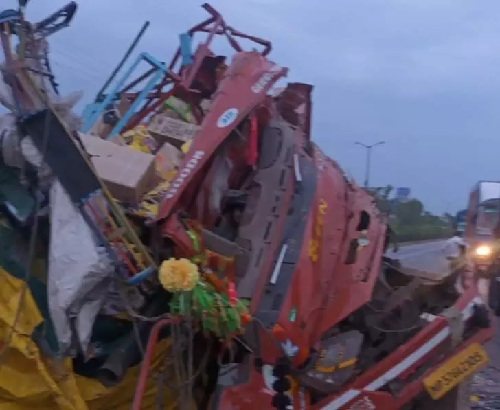 राजनांदगांव। राजनांदगांव मेडिकल कॉलेज के मोड़ से कुछ दूर पहले आशानगर के सामने सोमवार तड़के नेशनल हाईवे में एक मेटाडोर पलट गई। हादसे में मेटाडोर का सामने का हिस्सा बुरी तरह से क्षतिगस्त हो गया है। हालांकि वाहन चालक और सह-चालक को मामूली खरोंचे आई है। किसी भी तरह की जनहानि नहीं हुई है, लेकिन वाहन के सामने का हिस्सा नष्ट हो गया है। ऐसे में हादसे को देखकर अंदाजा लगाया जा रहा था कि वाहन चालक या सह-चालक को गंभीर चोंट पहुंची होगी।