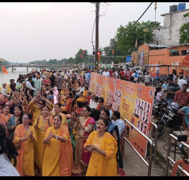 3 जुलाई 2023 संध्या 5:00 बजे महादेव घाट रायपुर में करणी सेना के द्वारा बनारस गंगा आरती तर्ज पर खारुन गंगा महाआरती एवं हाटकेश्वर महादेव पूजन गुरु पूर्णिमा के अवसर पर संपन्न हुआ, मंडल की किरण अग्रवाल ने बताया कि यह गंगा महा आरती संगिनी महिला मंडल को करने का सौभाग्य प्राप्त हुआ,महिला मंडल द्वाराआए हुए सभी भक्तों को पोहा का प्रसाद वितरण किया गया लल्लू महाराज के द्वारा भजन संध्या में महिलाओं ने खूब आनंद लिया,महा आरती और प्रसाद का वितरण कर सभी महिलाओं की खुशी देखते बन रही थी,मंडल की किरण अग्रवाल,शशी अग्रवाल,कविता गोयनका,शिखा चौधरी,साधना अग्रवाल,सरिता अग्रवाल, जय श्री शर्मा,किरण गुप्ताा,शशी अग्रवालआदि महिलाएं उपस्थित थी