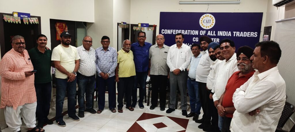 कन्फेडरेशन ऑफ ऑल इंडिया ट्रेडर्स (कैट) के राष्ट्रीय वरिष्ठ उपाध्यक्ष अमर पारवानी, चेयरमेन मगेलाल मालू, अमर गिदवानी, प्रदेश अध्यक्ष जितेन्द्र दोशी, कार्यकारी अध्यक्ष विक्रम सिंहदेव, परमानन्द जैन, वाशु माखीजा, महामंत्री सुरिन्द्रर सिंह, कार्यकारी महामंत्री भरत जैन एवं कोषाध्यक्ष अजय अग्रवाल ने बताया कि कैट सी.जी. चैप्टर के प्रदेश कार्यालय में कैट सी.जी. एवं युवा टीम के पदाधिकारियों की आवश्यक मिटिंग हुई हैं। मिटिंग की अध्यक्षयता कैट के राष्ट्रीय वरिष्ठ उपाध्यक्ष श्री अमर पारवानी जी ने की। मिटिंग में कैट सी.जी. चैप्टर एवं युवा टीम के पदाधिकारी उपस्थित रहे।
