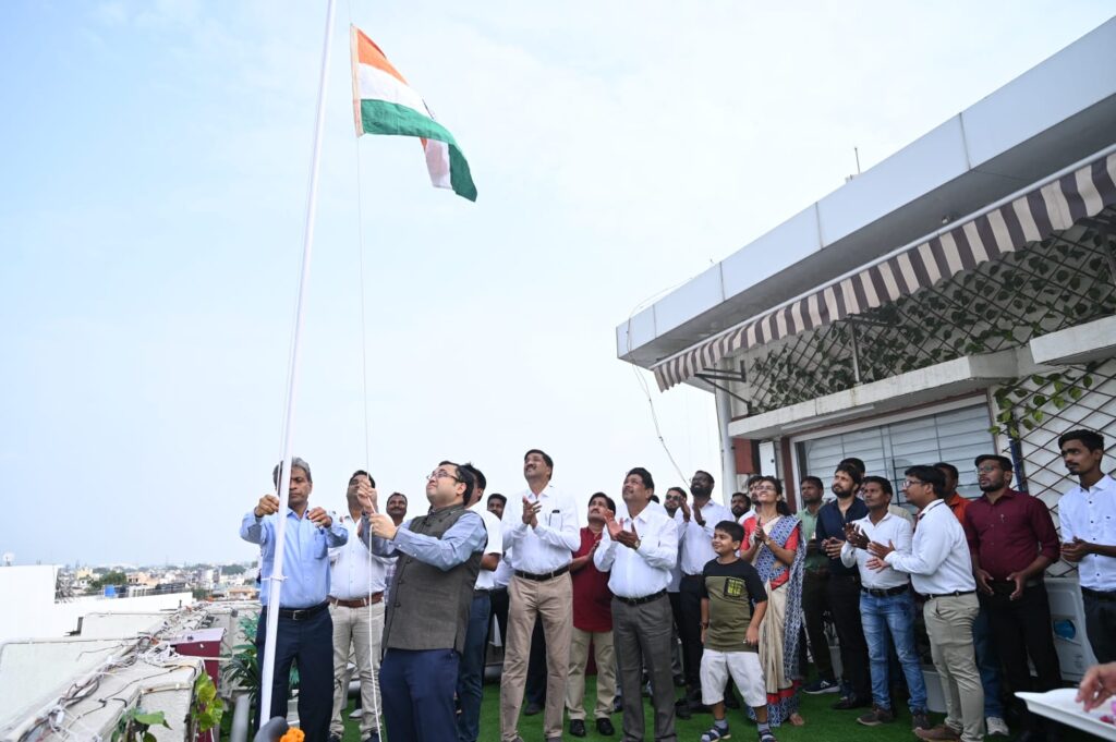 रायपुर। मुख्य परिचालन अधिकारी उज्जवल पोरवाल ने स्वतंत्रता दिवस के अवसर पर आज सिटी कोतवाली स्थित रायपुर स्मार्ट सिटी लि. कार्यालय में ध्वजारोहण किया। इस अवसर पर रायपुर स्मार्ट सिटी लि. के महाप्रबंधक (तकनीकी) श्री पंकज पंचायती, अतिरिक्त महाप्रबंधक बी.आर. अग्रवाल, उप-महाप्रबंधक (वित्त) अमित शर्मा, डिप्टी मैनेजर संजय शर्मा, डिप्टी मैनेजर (जी.आई.एस.) रंजीत रंजन, प्रोक्योरमेंट स्पेशलिस् विवेक चंद्राकर, असिस्टेंट मैनेजर योगेंद्र साहू, शुभम तिवारी, श्रीमती नेहा पटेल सहित सभी अधिकारी-कर्मचारी एवं स्टॉफ़ उपस्थित रहें।