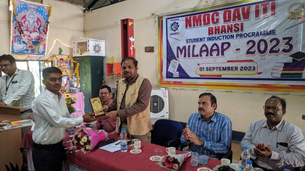 एनएमडीसी डीएवी आइटीआई भान्सी में नवप्रवेशित छात्रों एवं पालकों के लिए प्रत्येक वर्ष संस्था में अधिष्ठापन कार्यक्रम (मिलाप) का आयोजन किया जाता है, इसी कड़ी में दिनांक 01 सितम्बर, 2023 को सत्र 2023-24 के नवप्रवेशित छात्रों के लिए अधिष्ठापन कार्यक्रम (मिलाप-2023) का आयोजन रखा गया l इसमें संस्था के सभी शिक्षकगण, छात्र एवं उनके पालक शामिल हुए l