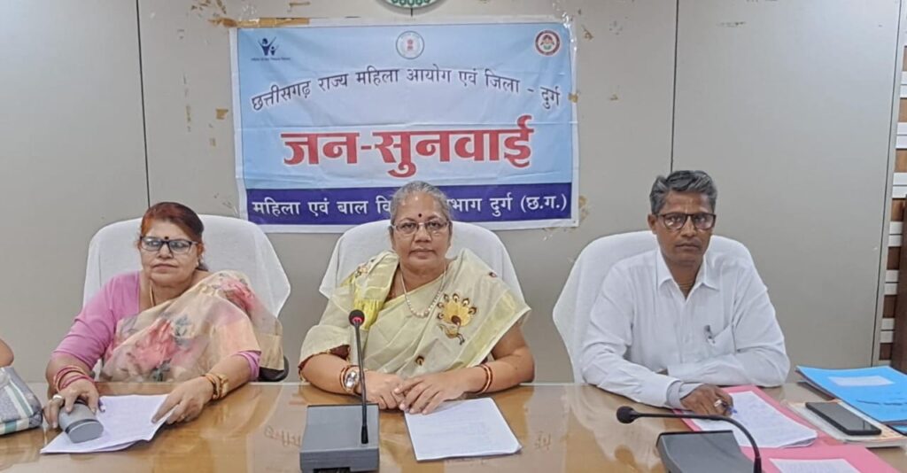 दुर्ग// छत्तीसगढ़ राज्य महिला आयोग की अध्यक्ष डॉ. किरणमयी नायक ने आज जिला पंचायत सभा कक्ष, जिला-दुर्ग (छ.ग.) में महिला उत्पीड़न से संबंधित प्रकरणों पर जनसुनवाई की। छत्तीसगढ़ राज्य महिला आयोज की अध्यक्ष डॉ. किरणमयी नायक की अध्यक्षता में आज दुर्ग जिला की 222 वी एवं जिला स्तर पर 09 वीं सुनवाई हुई। दुर्ग जिले में आयोजित जन सुनवाई में कुल 35 प्रकरणों पर सुनवाई की गई।