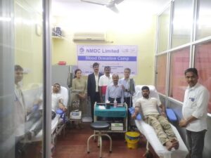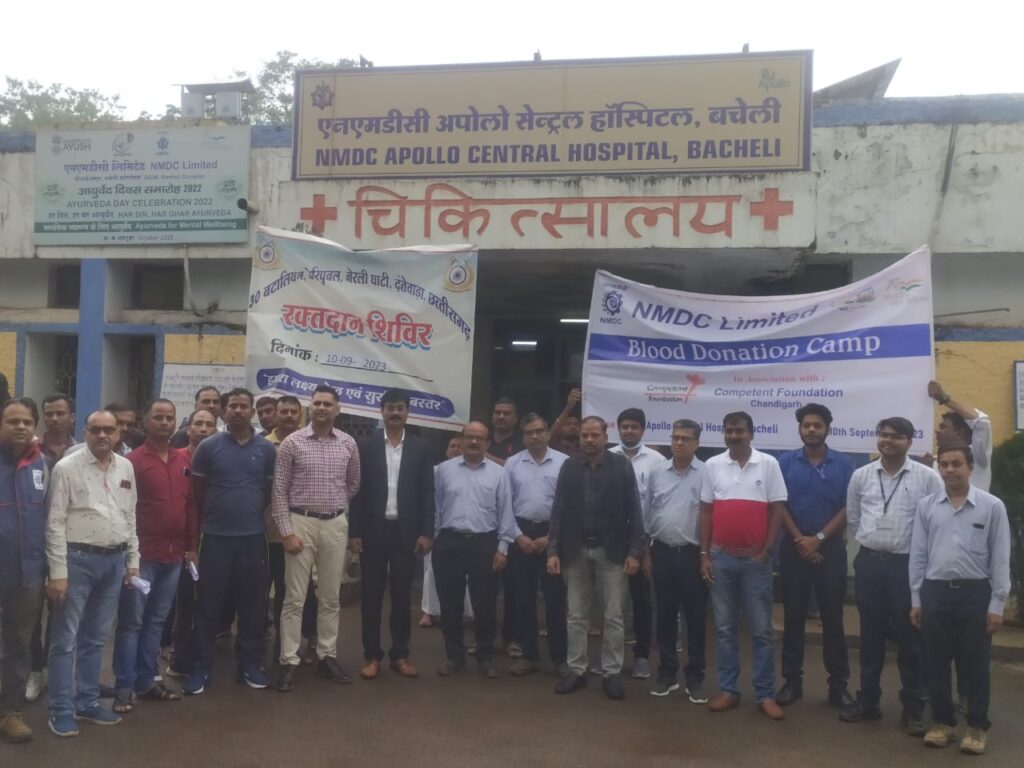 एनएमडीसी लिमिटेड द्वारा कम्पीटेंट फाउंडेशन, चंडीगढ़ के साथ मिलकर महा रक्तदान शिविर का आयोजन अपने मुख्यालय हैदराबाद एवं अपनी विभिन्न परियोजनाओं जैसे बचेली व किरंदुल में दिनाँक 10 सितम्बर, 2023 को किया गया । इसी कड़ी में बीआईओएम, बचेली कॉम्प्लेक्स द्वारा रक्तदान शिविर का आयोजन किया गया था, जिसका उद्घाटन श्री बी. वेंकटश्वरलू (अधिशासी निदेशक) बीआईओएम, बचेली कॉम्प्लेक्स के करकमलों में किया गया। इस रक्तदान शिविर में 70 से अधिक यूनिट रक्त एकत्रित की गई।