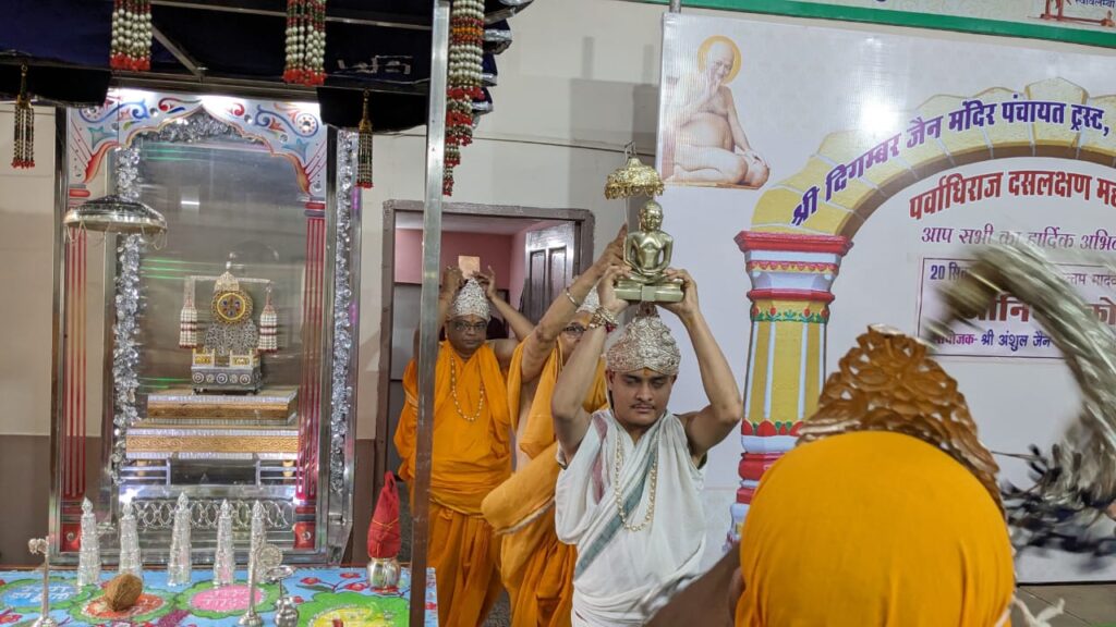 श्री आदिनाथ दिगम्बर जैन बड़ा मंदिर पंचायत ट्रस्ट मालवीय रोड मे पर्वाधिराज दसलक्षण पर्युषण महापर्व के अवसर पर आज दूसरा दिन 20 सितंबर 2023 भाद्रप्रद शुक्ल पक्ष तिथि पंचमी वीर निर्वाण संमवत २५४९ बुधवार के दिन उत्तम मार्जव दिवस मनाया गया ट्रस्ट कमेटी के अध्यक्ष संजय नायक एवं सचिव राजेश रज्जन जैन ने बताया की प्रतिदिन की तरह आज प्रातः 7 बजे 12 वे तीर्थंकर श्री वासुपूज्य भगवान का 4 स्वर्ण कलशो सें अभिषेक किया गया आज के प्रथम अभिषेक का सौभाग्य सभी इंद्र प्रिंस मनोज जैन, कीर्ति जैन, विमल जैन, मनोज जैन को प्राप्त हुआ आज की रिद्धि सिद्धि प्रदाता प्रथम शांति धारा करने का सौभाग्य अजय कुमार विजय कुमार नायक को प्राप्त हुआ तत्पश्चात श्री जी की आरती एवं सामूहिक पूजन किया गया आज के कार्यक्रम मे बड़ी संख्या मे महिलाये बच्चे युवा सभी उपस्थित थे