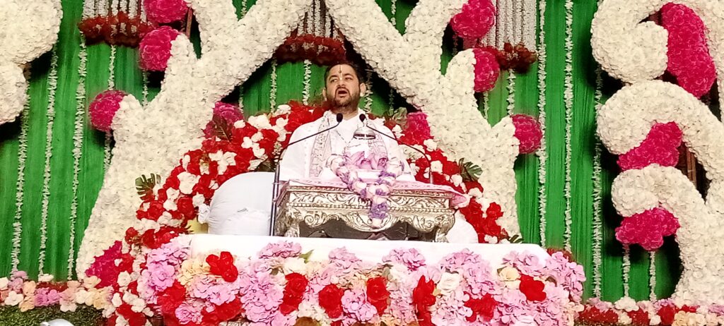 रायपुर।राजधानी रायपुर के हरे कृष्ण धाम आलोपी नगर टाटीबंध स्थित श्री श्री राधा रास बिहारी जी इस्कॉन मंदिर में आज 24 सितंबर से 30सितंबर तक प्रतिदिन दोपहर 3 बजे से शाम 7बजे तक वृंदावन धाम के आचार्य पुण्डरीक महाराज के मधुर वाणी से श्रीमद् भागवत कथा का वाचन किया जा रहा है। श्रीमद् भागवत कथा का आयोजन श्री कृष्णा जन्माष्टमी महा महोत्सव एवं आयोजन समिति के अध्यक्ष शुभम् सिंघल द्वारा आयोजित किया जा रहा है। श्रीमद् भागवत कथा का शुभारंभ आज 24 सितंबर को कलश यात्रा से हुई कलश यात्रा आज सुबह 11 बजे राम जानकी मंदिर से इस्कॉन मंदिर कथा स्थल पहुंची ।कलश यात्रा में 108 माताएं एवं बहनें शामिल हुई। श्रीमद् भागवत कथा की शुरुआत आचार्य पुण्डरीक महाराज द्वारा जय राधा माधव जय कुंज बिहारी जय गोपी जनवल्भ,जत गिरिवरधारी जय राधा माधव जय कुंज बिहारी भजन के साथ हुई।इस पावन अवसर पर निर्माणाधीन इस्कॉन मंदिर के संबंध में कहा कि मंदिर अभी अधूरा है तो इतना सुंदर दिख रहा है तो जब मंदिर बनकर पूरी तरह तैयार हो जाएगा तो कितना सुन्दर दिखेगा ।उन्होंने कहा आगे कहा कि कोई भी निर्माण हो वह तब तक अधूरा रहता है जब तक वहां भगवान श्रीकृष्ण ठाकुर जी विराजमान नहीं हो जाते ।जब भगवान श्रीकृष्ण विराजते हैं तब वह निर्माण पूर्ण होता है।कोई भी निर्माण हो वहां पहले भगवान श्रीकृष्ण ही विराजते हैं । उन्होंने कहा कि क्यों कि हरि अनंत है और हरि की कथा भी अनंत है,और हरि कथा के श्रवण से ही जीव को भगवान हरि की कृपा प्राप्त होती है। वहीं श्रीमद् भागवत कथा में शामिल हुए विधायक कुलदीप जुनेजा ने कहा कि श्रीमद् भागवत कथा का आयोजन बहुत ही सुन्दर व अच्छा हैइस तरह के धार्मिक आयोजन से लोगों में अच्छा संदेश जाता है और इस तरह का आयोजन समय समय पर होना चाहिए।राजधानी रायपुर में आचार्य पुण्डरीक महाराज का यह प्रथम आगमन है ,आचार्य पुण्डरीक महाराज 25 सितंबर को विराट स्वरूप वर्णन, ध्रुव चरित्र
