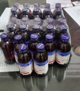 इसी क्रम में 27.09.2023 को एण्टी क्राईम एण्ड साईबर यूनिट की टीम को सूचना प्राप्त हुई कि थाना आजाद चौक क्षेत्रांतर्गत लाखेनगर ईदगाहभाठा स्थित संकट मोचन हनुमान मंदिर के पीछे एक व्यक्ति प्रतिबंधित नशीली सिरप रखा है तथा बिक्री करने की फिराक में है। जिस अतिरिक्त पुलिस अधीक्षक पश्चिम श्री जय प्रकाश बढ़ई, अतिरिक्त पुलिस अधीक्षक अपराध श्री पिताम्बर पटेल, नगर पुलिस अधीक्षक आजाद चौक श्री मयंक गुर्जर (भा.पु.से.) एवं उप पुलिस अधीक्षक क्राईम श्री दिनेश सिन्हा द्वारा प्रभारी एण्टी क्राईम एण्ड साईबर यूनिट तथा थाना प्रभारी आजाद चौक को सूचना की तस्दीक कर आरोपी को प्रतिबंधित नशीली सिरप के साथ रंगे हाथ पकड़ने निर्देशित किया गया। जिस पर एण्टी क्राईम एण्ड साईबर यूनिट तथा थाना आजाद चौक पुलिस की संयुक्त टीम द्वारा उक्त स्थान पर जाकर मुखबीर द्वारा बताए हुलिये के व्यक्ति को चिन्हांकित कर पकड़ा गया। पूछताछ मंे व्यक्ति का नाम आवेश बेग उर्फ़ पांडेय निवासी आजाद चौक रायपुर का होना बताया। टीम के सदस्यों द्वारा उसके पास रखें थैले की तलाशी लेने पर थैले में प्रतिबंधित नशीली सिरप कोड़िन रखा होना पाया गया। उक्त प्रतिबंधित नशीली सिरप रखने के संबंध में आरोपी से वैध दस्तावेज या अन्य कागजात प्रस्तुत करने कहने पर उसके द्वारा किसी भी प्रकार का कोई वैध दस्तावेज या कागजात प्रस्तुत न कर टीम के सदस्यों को लगातार गुमराह करने का प्रयास किया जा रहा था। जिस पर आरोपी आवेश बेग उर्फ़ पांडेय को गिरफ्तार कर उसके कब्जे से *कुल 22 शीशी प्रतिबंधित नशीली सिरप कोड़िन कीमती लगभग 5,000/- रूपये* जप्त कर आरोपी के विरूद्ध थाना आजाद चौक में अपराध क्रमांक 302/23 धारा 21(सी) नारकोटिक्स एक्ट का अपराध पंजीबद्ध कर कार्यवाही किया गया।