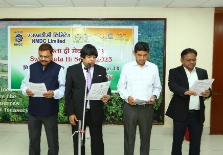 हैदराबाद/रायपुर। अग्रणी सीपीएसई, एनएमडीसी 15 सितंबर से 2 अक्टूबर, 2023 तक राष्ट्रीय स्वच्छता आंदोलन – स्वच्छता ही सेवा में शामिल हुआ। स्वच्छता ही सेवा अभियान के एक भाग के रूप में, कर्मचारियों ने स्वच्छता के लिए प्रति सप्ताह 2 घंटे समर्पित करने का संकल्प लिया। और हरित राष्ट्र, आज देश भर में अपने प्रधान कार्यालय और परियोजनाओं पर।