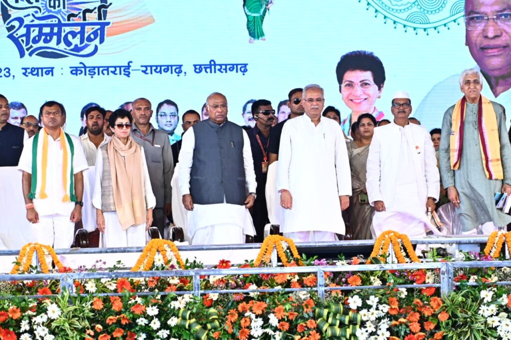 रायगढ़, 4 अक्टूबर 2023/ रायगढ़ के कोड़ातराई में 04 अक्टूबर को भरोसे के सम्मेलन कार्यक्रम में नेता प्रतिपक्ष राज्यसभा व सांसद मल्लिकार्जुन खडग़े व मुख्यमंत्री भूपेश बघेल ने 82 चयनित विकासखण्डों में बनने वाले जैतखाम का शिलान्यास किया।