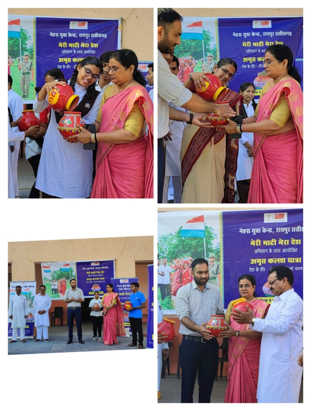 नेहरू युवा केंद्र रायपुर, युवा कार्यक्रम एवं खेल मंत्रालय, भारत सरकार द्वारा मतदान हर नागरिक की ज़िम्मेदारी का संदेश दिया। साथ ही मेरी माटी मेरा देश कार्यक्रम के अंतर्गत हर घर हर गाँव से मिट्टी व चावल एकत्रित किए गए उसे आज विकासखंड स्तर पर सरस्वती शिशु मंदिर, देवंद्र नगर में एक कलश में एकत्रित किया गया। इस कलश को अब नेहरू युवा केंद्र के स्वयंसेवकों द्वारा दिल्ली के लिए प्रस्थान होगा जहां पर कर्तव्यपथ पर अमृत वाटिका का इसी मिट्टी के माध्यम से निर्माण किया जाएगा।