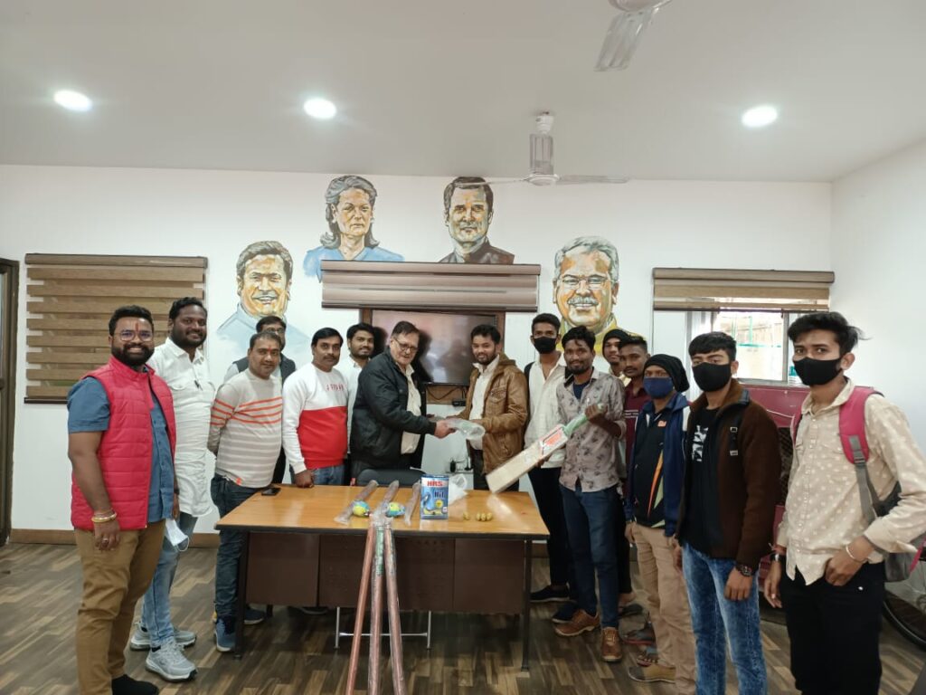 रायपुर । रायपुर पश्चिम के विधायक विकास उपाध्याय ने अपने विधानसभा के सन्त रविदास वार्ड,सरोना के खेलप्रेमी युवकों को क्रिकेट सामग्री का सेट भेंट किया। विधायक विकास उपाध्याय द्वारा लगातार विधानसभा के जरूरतमंद व्यक्तियों और समितियों को आवश्यक वस्तुएँ भेंट की जा रही हैं,इसी कड़ी में आज सरोना के युवाओं को विधायक की अनुपस्थिति में उनके प्रतिनिधियों के माध्यम से बैट,बॉल और स्टंप का सेट भेंट किया गया।