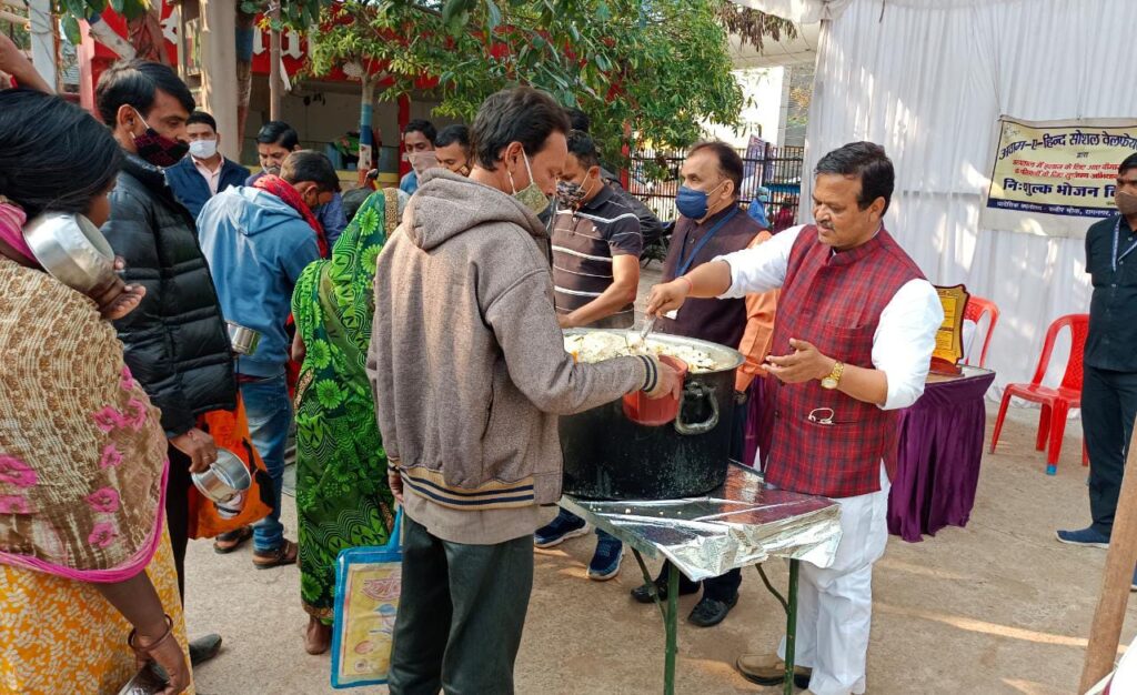 रायपुर । राजधानी की सर्वधर्म जनहित एवं सामाजिक संस्था, अवाम ए हिन्द सोशल वेलफेयर कमेटी ने सन 2021 में सुपोषण अभियान की शुरुवात करते हुए गरीब, असहाय, जरुरतमन्दों को निःशुल्क भोजन वितरण सेवा कार्य के 365 दिन पूर्ण करते हुए शासकीय डी.के.एस अस्पताल में अन्य जिलों व गांव वनांचल, दूर दराज से इलाज के लिए आये मरीज के परिजनों को स्वादिष्ट भोजन के साथ मिष्ठान एवं फलों का वितरण किया गया।संस्था द्वारा आयोजित इस गरिमामयी कार्यक्रम के मुख्य अतिथि छत्तीसगढ़ राज्य अनुसूचित जनजाति आयोग के अध्यक्ष, भानुप्रताप सिंह (केबिनेट मंत्री दर्जा प्राप्त) उपस्थित रहे, जिन्होंने संस्था के अन्य कार्यों एवं एक साल तक निःशुल्क भोजन वितरण पर सराहना करते हुए उत्साहवर्धन किया और अपने हाथों से जरूरतमंदों, मरीजों के परिजनों को भोजन वितरण कर उनका हाल चाल पूछा तथा इस मानवीय कार्य में जरूरतमंदों के लिए भोजन वितरण हेतु सहयोग राशि प्रदान किया।संस्थापक, मो. सज्जाद खान ने भानुप्रताप सिंह जी का पुष्प गुच्छ, स्मृति चिन्ह भेंट कर सामान किया और बताया कि संस्था अपने दायित्वों का निर्वहन कर कोरोनाकाल की विषम परिस्थितियों में भी गरीब असहाय, निराश्रित जरूरतमंदों के लिए कार्य कर निरन्तर अपने प्रयासों से 365 दिन निःशुल्क भोजन मुहैया कराने का लक्ष्य प्राप्त किया।आज सम्पन्न इस कार्यक्रम में संस्थापक, मो. सज्जाद खान के साथ पँडित अनिल शुक्ल, सैय्यद जाकिर हुसैन, राजेंद्र शर्मा, जुबैर खान, योगेश्वर सिन्हा, अनमोल जैन, वसीम अकरम, बलराम कश्यप, दिव्यांश शर्मा, प्रीति जैन सहित अन्य सदस्य उपस्थित रहे।