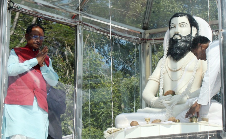 रायपुर,18 दिसंबर/मुख्यमंत्री विष्णुदेव साय ने गुरु बाबा की जयंती पर गुरु घासीदास केन्द्रीय विश्वविद्यालय परिसर में स्थापित बाबा घासीदास की प्रतिमा पर माल्यार्पण कर उन्हें सादर नमन किया। उन्होंने छत्तीसगढ़ की खुशहाली एवं समृद्धि के लिए गुरु बाबा से आशीर्वाद लिया।