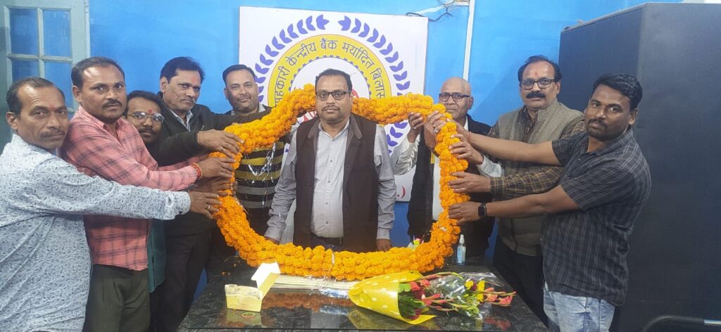 जांजगीर । नव नियुक्त नोडल अधिकारी का हुआ स्वागत जिला सहकारी केंद्रीय बैंक जिला जाँजगीर-चाँपा के नव नियुक्त नोडल अधिकारी श्री रेशम लाल तिवारी जी ने आज नोडल कार्यालय पहुँचकर अपना पदभार ग्रहण किया श्री तिवारी जी के नोडल कार्यालय पहुंचने पर बैंक एवं समितियों के कर्मचारियों द्वारा बुके भेंटकर एवं फूलमाला पहनाकर आत्मीय स्वागत किया गया। इस अवसर पर सहायक नोडल अधिकारी घनश्याम प्रसाद तिवारी , ब्रांच मैनेजर शत्रु हन लाल पैकरा, केशीयर राजेश तिवारी,पूर्व पर्यवेक्षक दादूरैय्या सिंह एवं समिति प्रबंधक मनेंद्र शुक्ला , प्रमोद दुबे , देवकुमार दुबे , ब्रजेश तिवारी, लेखराम कश्यप,मयाराम राठौर,किशोंर कुमार साहू,मुनीष पाण्डेय,प्रदीप कश्यप,नितिन कुमार पाण्डेय,भूपेन्द्र राठौर,देवेन्द्र सिंह एवं शाखा जाँजगीर के कर्मचारी गण उपस्थित थे ।